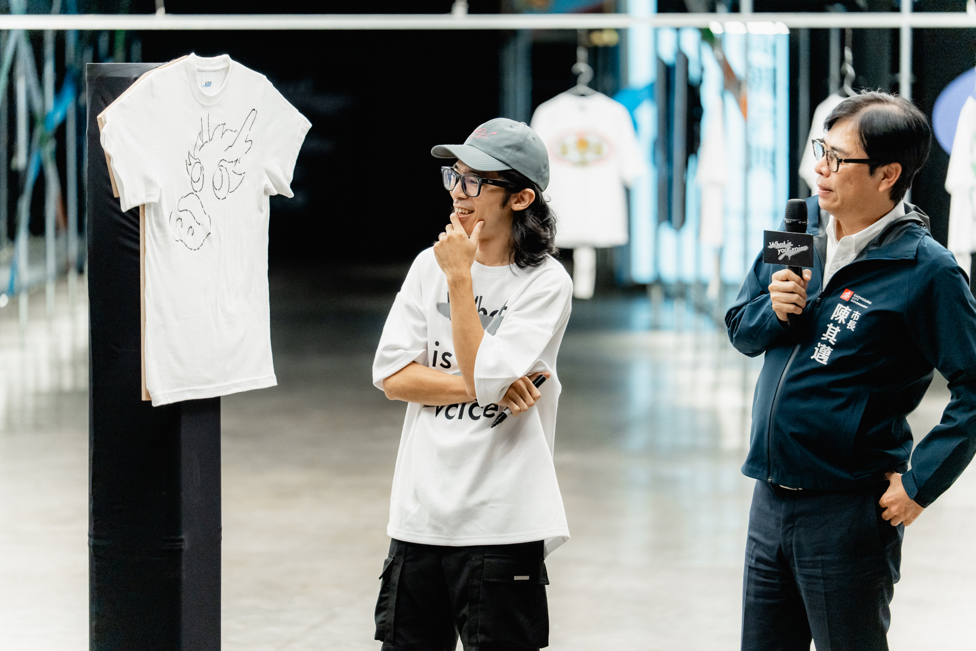 高雄市長陳其邁也親自現身,與策展人林唯哲共同完成一件「生猛有力」主題的白T作品。他笑稱在高手面前揮筆難免緊張,但希望能透過創作展現高雄自在奔放的城市精神。立委邱議瑩也即興出題「清涼有勁」,雙方一同完成拿著冰飲、氣勢磅礡的龍形潮T。陳其邁強調,高雄的特質就是「自在」,講話、做事都能自由展現自我,而這次設計節正是透過不同創作者的視角,把城市轉化為一種街頭潮流態度,讓更多人愛上高雄。