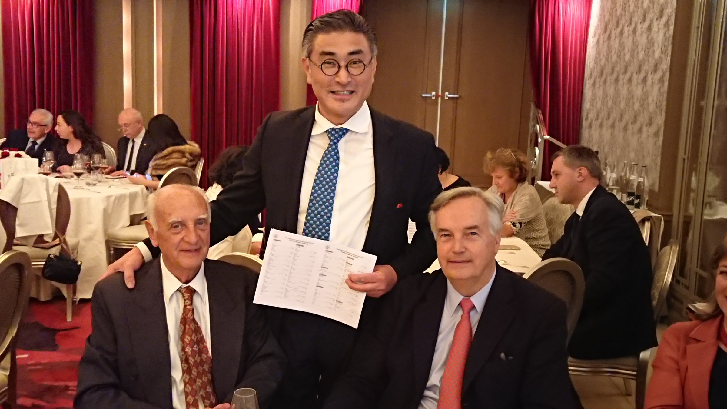 ↑圖說:陳千浩老師獲獎後開心與世界葡萄酒與烈酒協會OIV主席Alejandro Hernandez Munoz(右一)及捷克裁判長(左一)合影。(圖片來源:國立高雄餐旅大學提供)