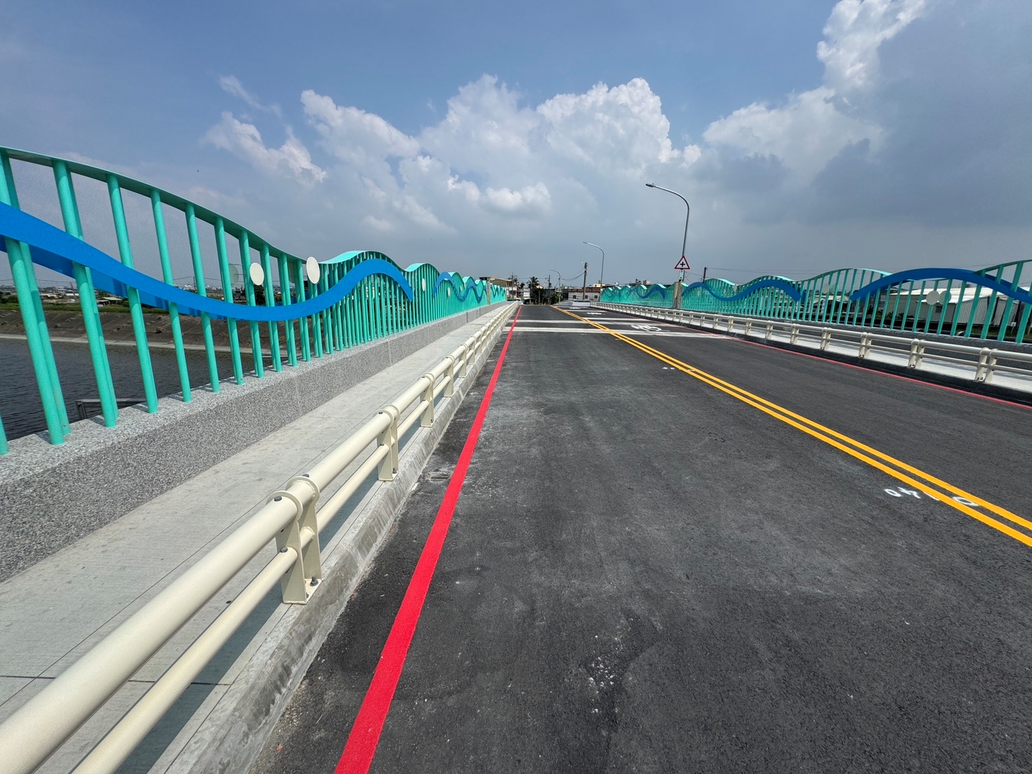 ↑圖說:彌陀舊港橋通車後拓寬至12公尺,並增設雙側人行道,提升車輛與行人通行安全。(圖片來源:高雄市工務局提供)