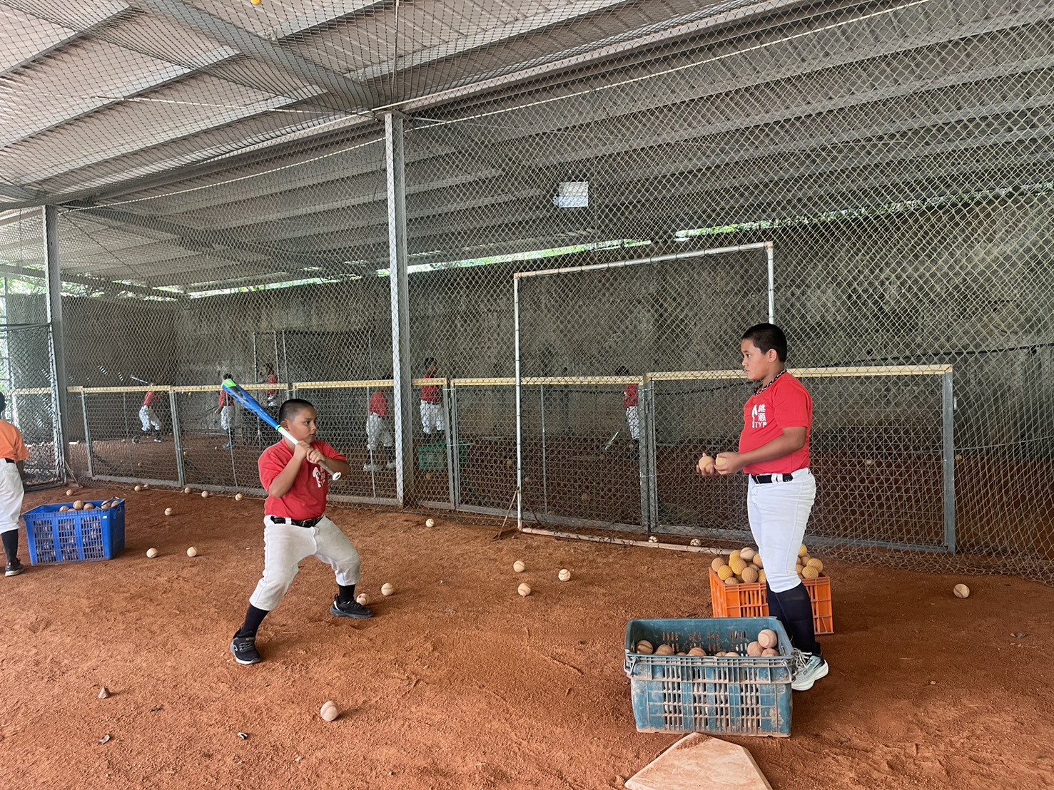 ↑圖說:桃源國小少棒隊小將,在修整好的紅土球場練習打擊。(圖片來源:運彩協進會提供)