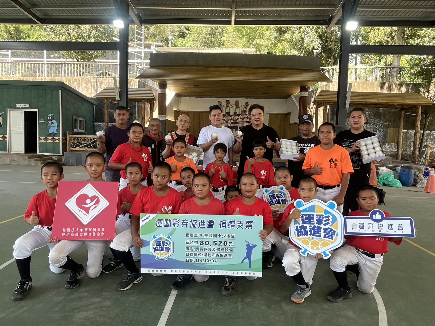 高雄市桃源區桃源國小少棒隊因近期風雨災害導致場地與球具受損,所幸在運彩協進會的愛心協助下,獲得場地修繕與球具添購經費支援。捐贈儀式於10月7日在桃源國小棒球練習場舉行,現場氣氛溫馨,除教練與小球員外,桃源國小校長涂宗成、高雄市原住民市議員高忠德辦公室主任高紀明、高雄市原住民權益關懷服務協會理事長巫振興及運彩協進會理事長蘇信誠等人皆親臨見證。