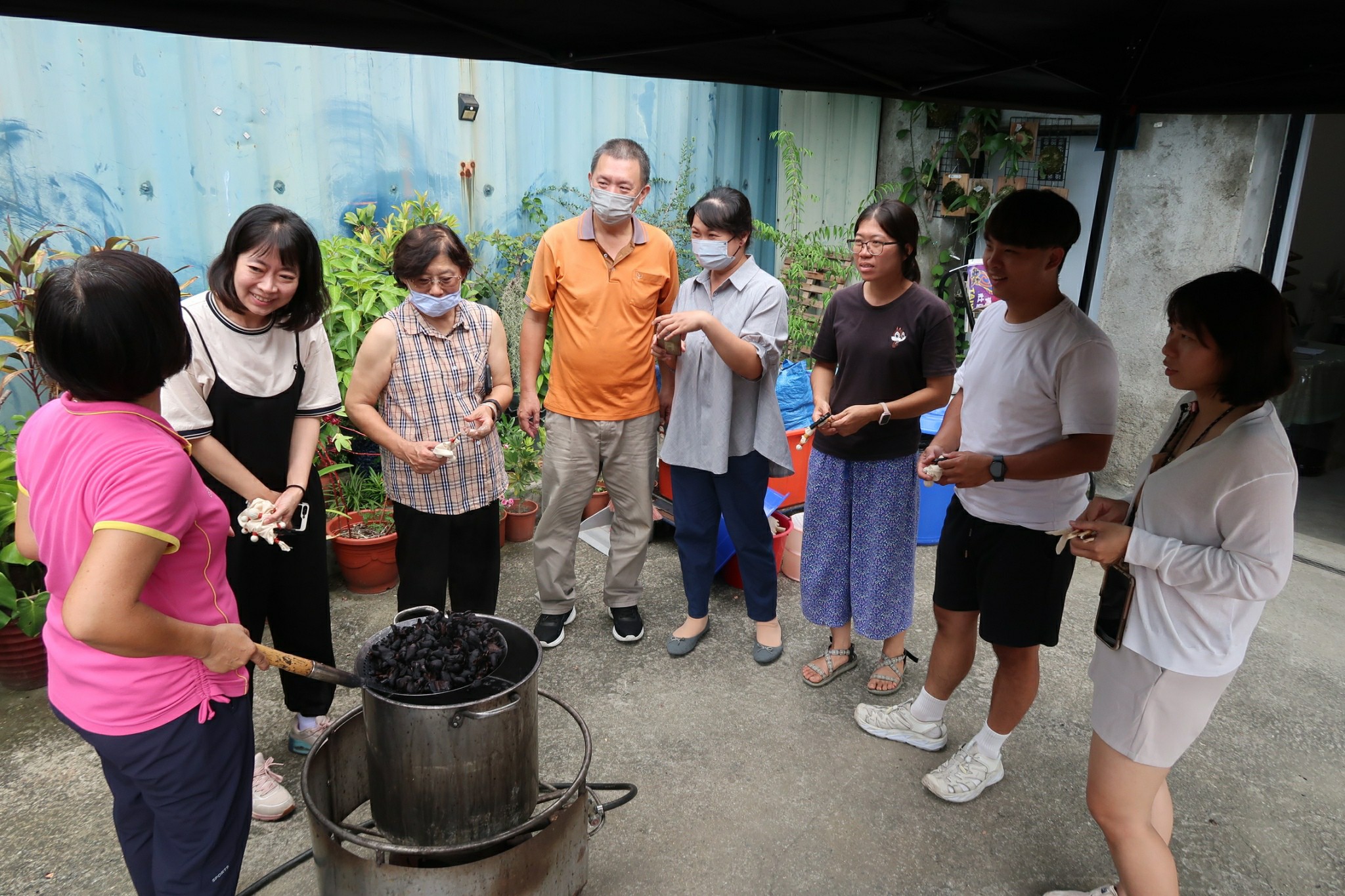 午餐時間則以日品有機米、仁允牧場產銷履歷豬肉及在地菱角入菜,呈現道地大寮風味。下午的教學設計實作中,學員盤點自身場域資源,規劃如何結合產業與教育。青農霍柏任分享燕巢泥火山地形造就芭樂風味的秘訣,並計畫將食農課程融入在地遊程;此構想也促成他與燕巢國中的合作,開啟青農與校園共學的新契機。