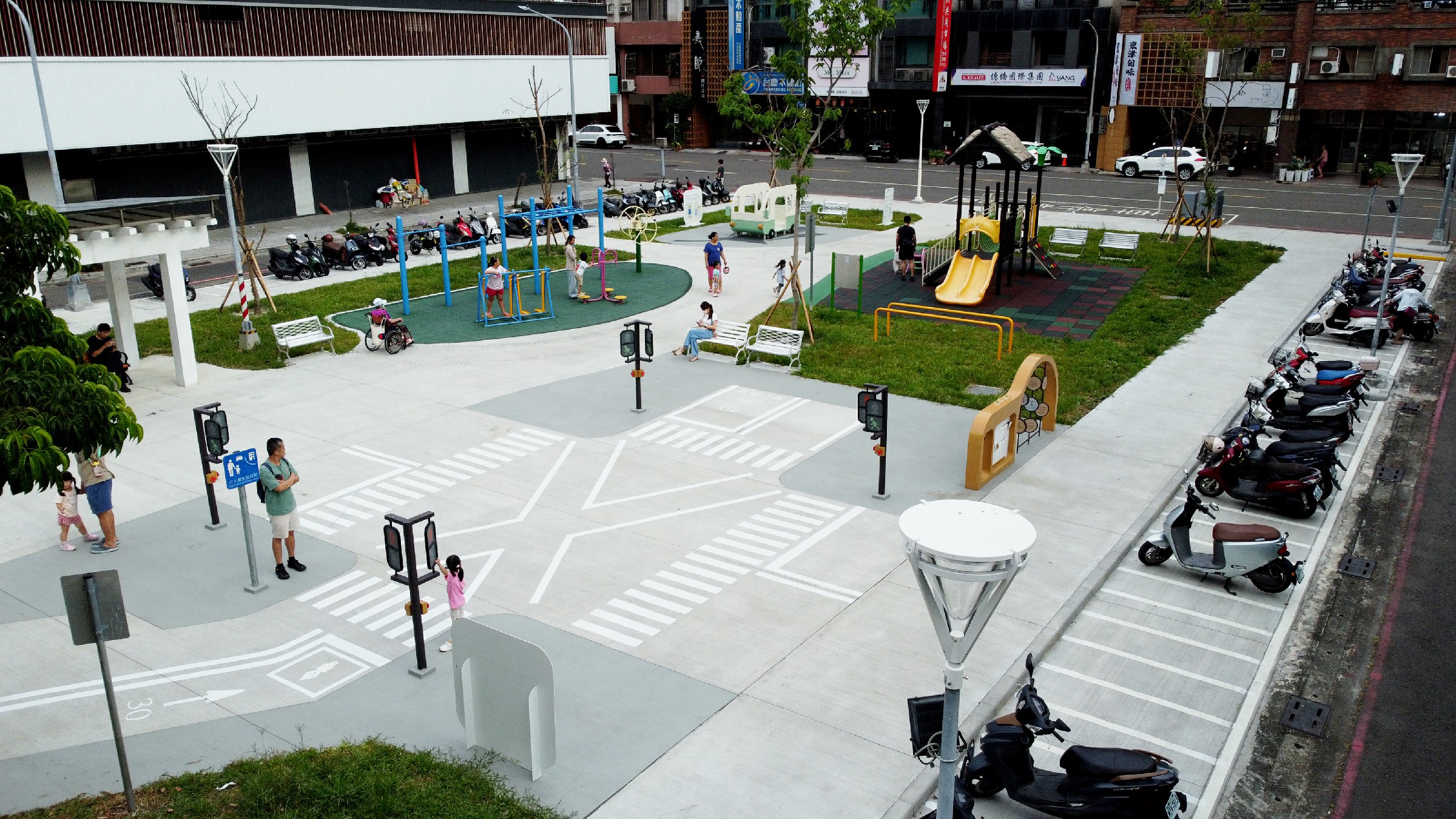 ↑圖說:園內設置模擬道路情境的交通教育場域,提供親子寓教於樂的體驗空間。(圖片來源:高雄市工務局提供)