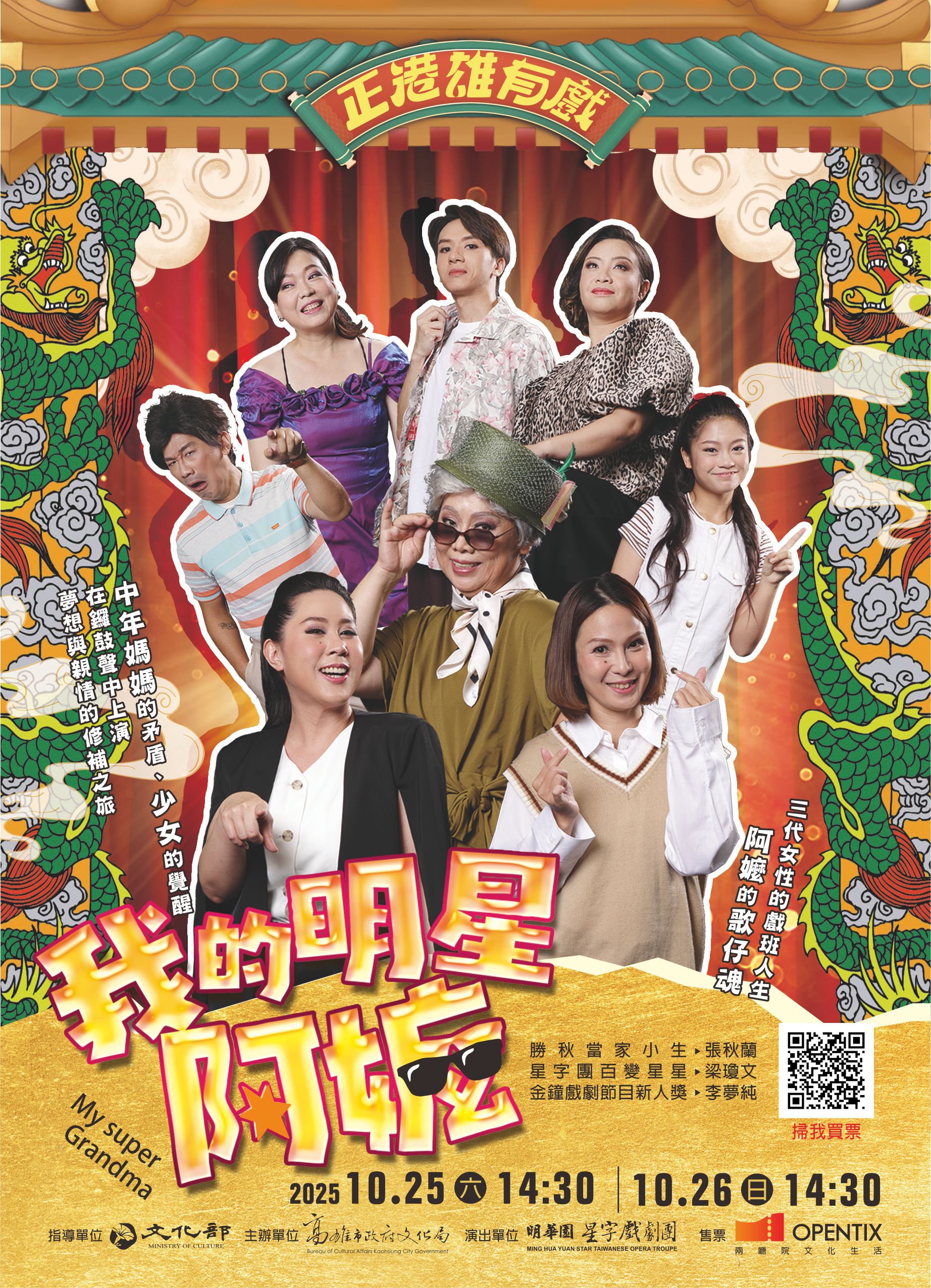 高雄年度小劇場盛事「2025正港雄有戲」第二檔節目即將登場!明華園星字戲劇團推出原創新作《我的明星阿嬤》,將於10月25日、26日下午2時30分在駁二正港小劇場演出。這齣以祖孫三代女性為主角的歌仔戲,改編自青少年文學作品《阿嬤的歌仔戲》,以細膩情感描繪女性在家庭、夢想與傳承間的掙扎與連結,為傳統戲曲注入當代靈魂。