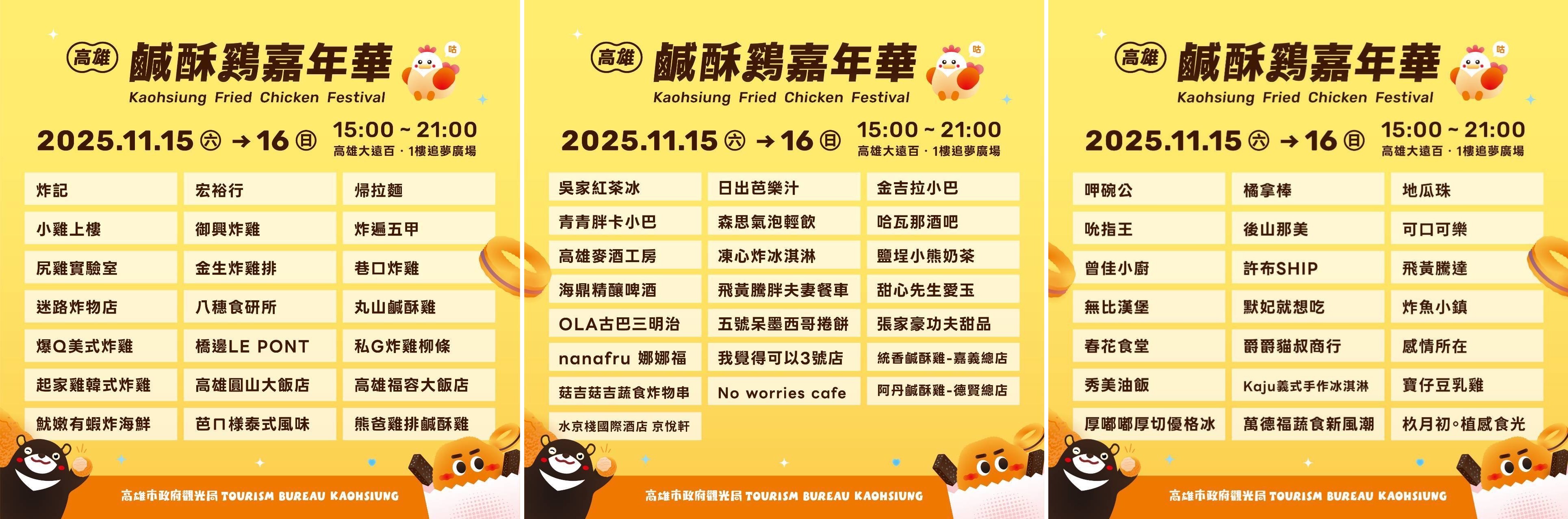 ↑圖說:「2025高雄鹹酥雞嘉年華」入選店家名單(圖片來源:高雄市觀光局提供)