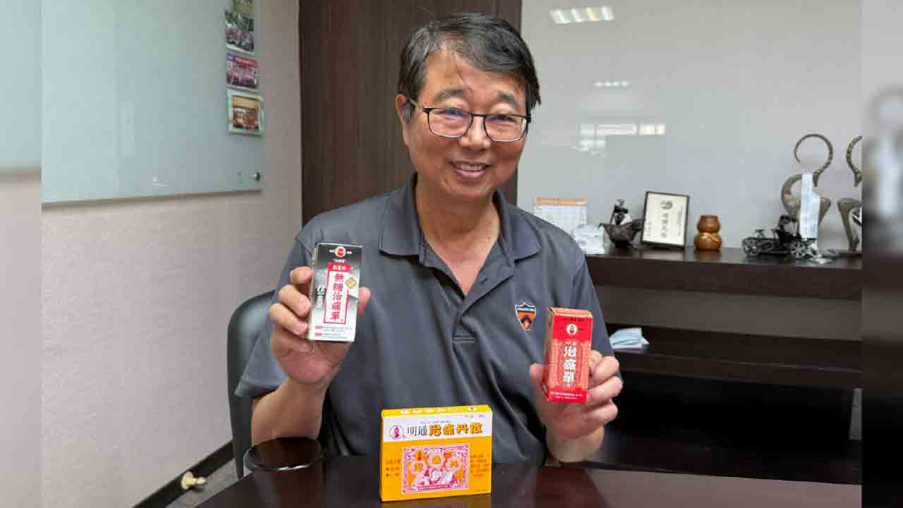 ↑圖說:張光道與三款明通製藥經典產品。(圖片來源:張光道提供)