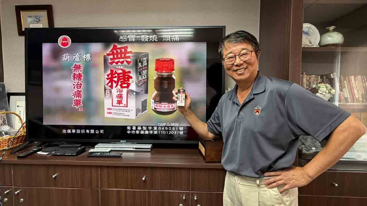 ↑圖說:張光道說治痛單液「無糖篇」外型也由他發想,在感冒糖漿使用黑白色調算創舉,至今銷售業績持續成長。(圖片來源:張光道提供)