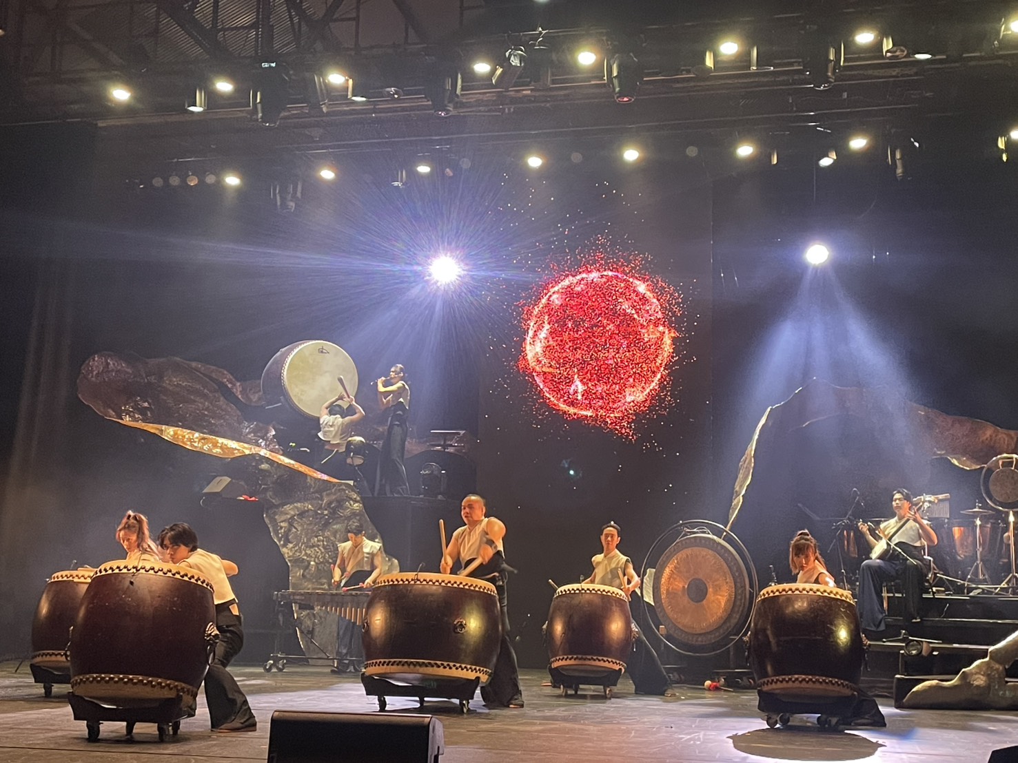 圖說:十鼓擊樂團紅球特效搭配層次豐富的大鼓演奏,呈現宇宙爆發的視覺意象 (圖片來源/記者林薇安攝)
