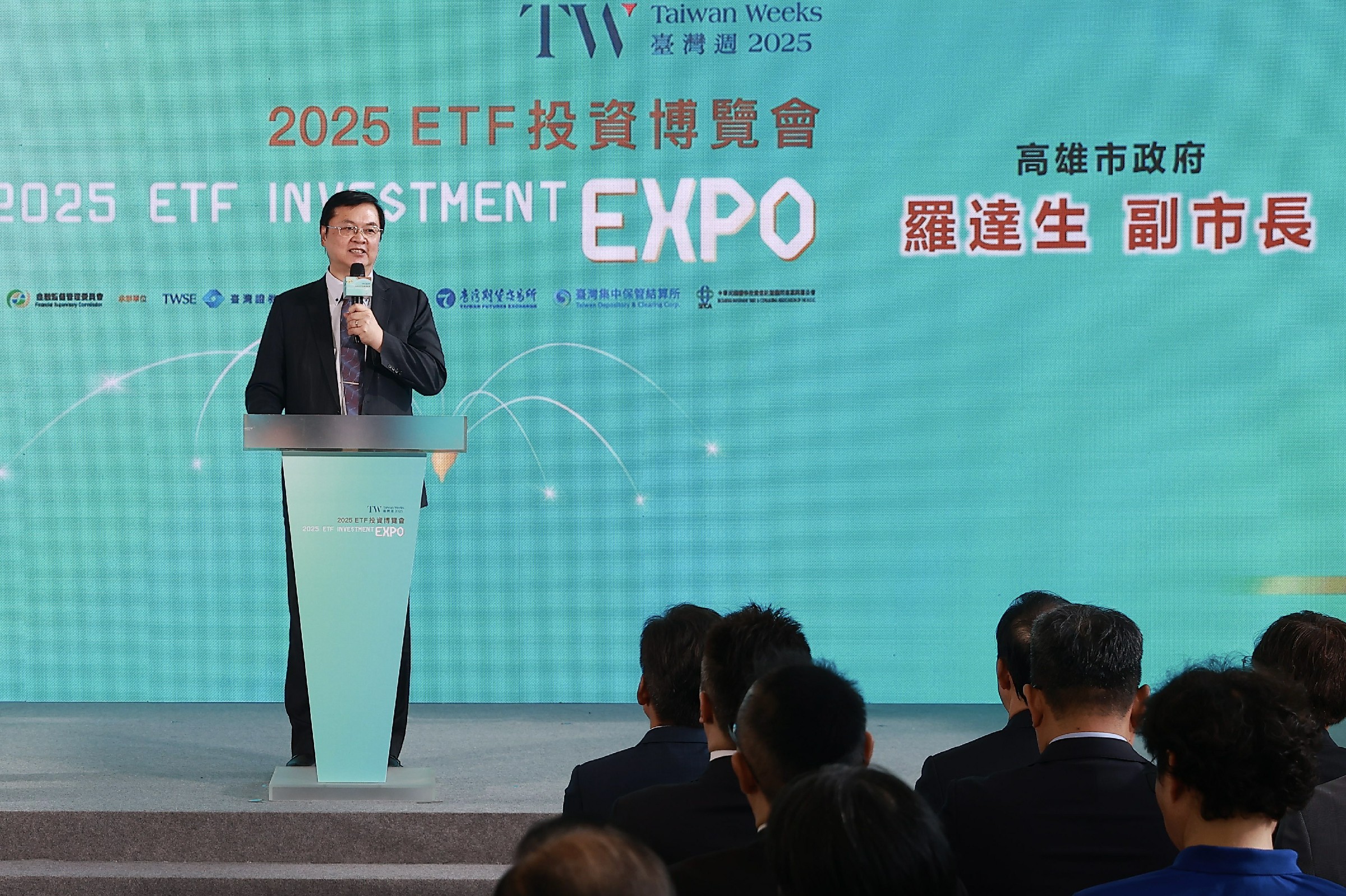 高雄市副市長羅達生致詞指出,高雄擁有得天獨厚的地理與產業優勢,亞資中心高雄專區自去年12月啟動以來,已有57家金融機構與市府簽署MOU,34家業者獲金管會核准進駐,成果顯著。他形容,「ETF投資博覽會的舉辦象徵金流南進,高雄的演唱會經濟帶來人流,金流加上人流,代表高雄城市發展的雙引擎」。他並強調,未來高雄將以產業科技、娛樂經濟、資本管理與碳經濟四大方向,推動城市轉型、接軌國際。