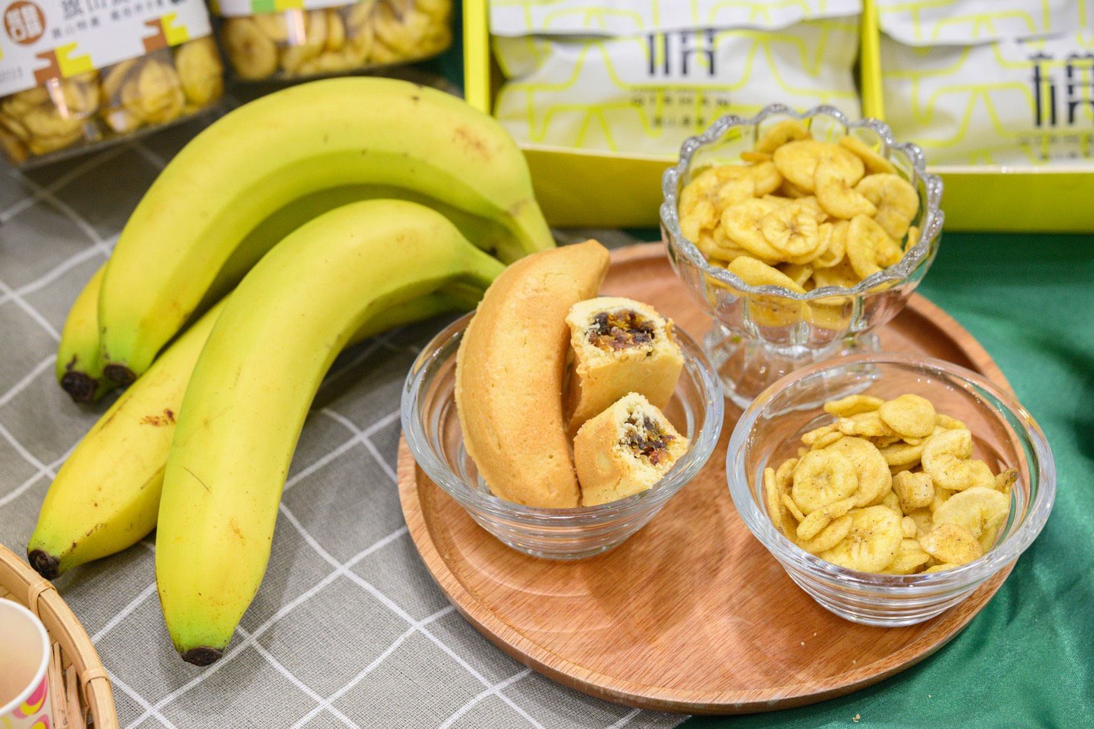 ↑圖說:旗山區農會新產品「午茶時光禮盒」,嚴選旗山香蕉、鳳梨製成的香蕉脆片及金蕉旺來酥,搭配精緻茶葉,化身最具高雄味的送禮首選。(圖片來源:高雄市農業局提供)