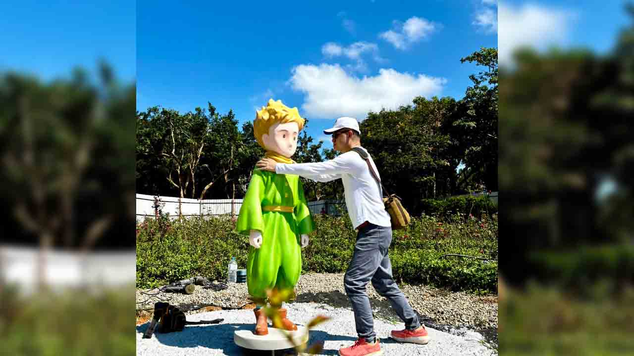 值得一提的是,即將揭幕的玫瑰園由黃騰輝親自創作的兩座小王子雕塑,分別承載愛與守護的寓意。第一座〈小王子〉獨立立像,依原著作者聖修伯里 1.68 公尺身高等比例雕塑而成,他靜靜凝望整片花園,象徵每一位來訪者都能找到心中珍視的一朵玫瑰。第二座〈小王子擁抱狐狸〉,重現經典情節,象徵馴養與信任的約定,提醒世人唯有以心與愛為眼,才能看見最重要的事物。