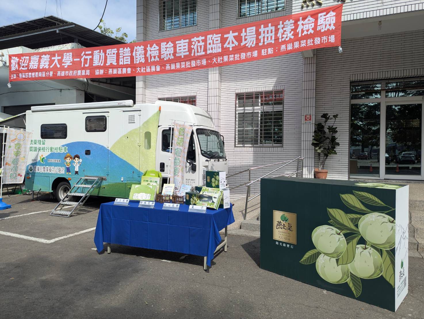 ↑圖說:「質譜宅急便」行動質譜車巡迴快篩服務導入「燕巢果菜批發市場」,每週三至五為期兩週,提供現場快檢服務。(圖片來源:高雄市農業局提供)
