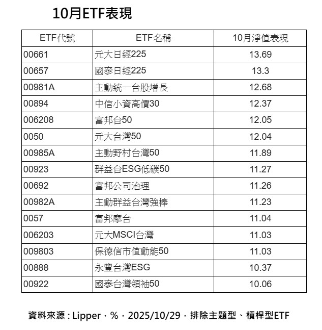 台日ETF十月強棒出列!績效一表掌握 法人這樣看後市