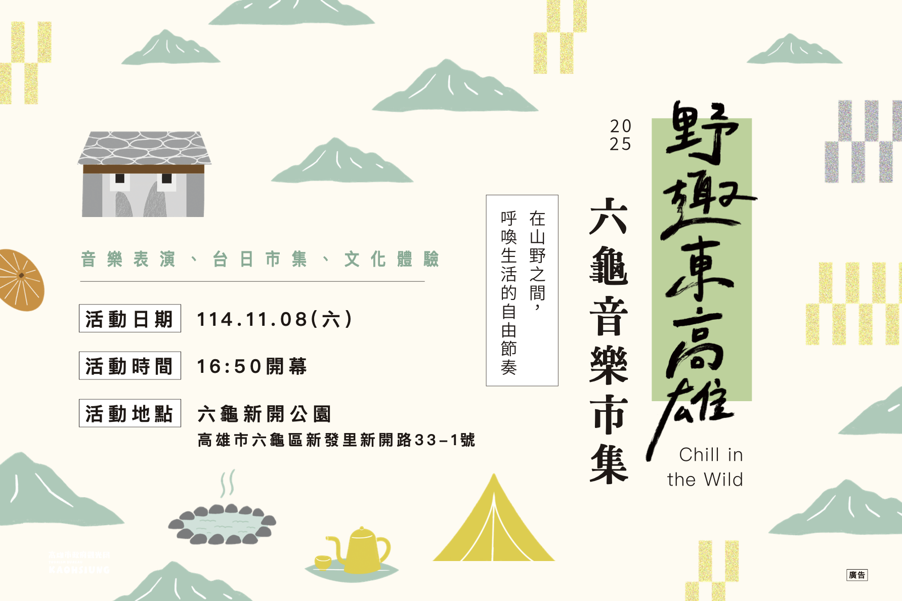 秋意漸濃,正是走進山林、感受溫泉野趣的好時節。高雄市政府觀光局主辦的「野趣東高雄:六龜音樂×市集」,將於11月8日在六龜新開紀念公園熱鬧登場。活動以「聆聽土地的邀請」為主題,融合音樂、市集、美食與文化體驗,邀請民眾在自然懷抱中享受秋日的療癒時光。