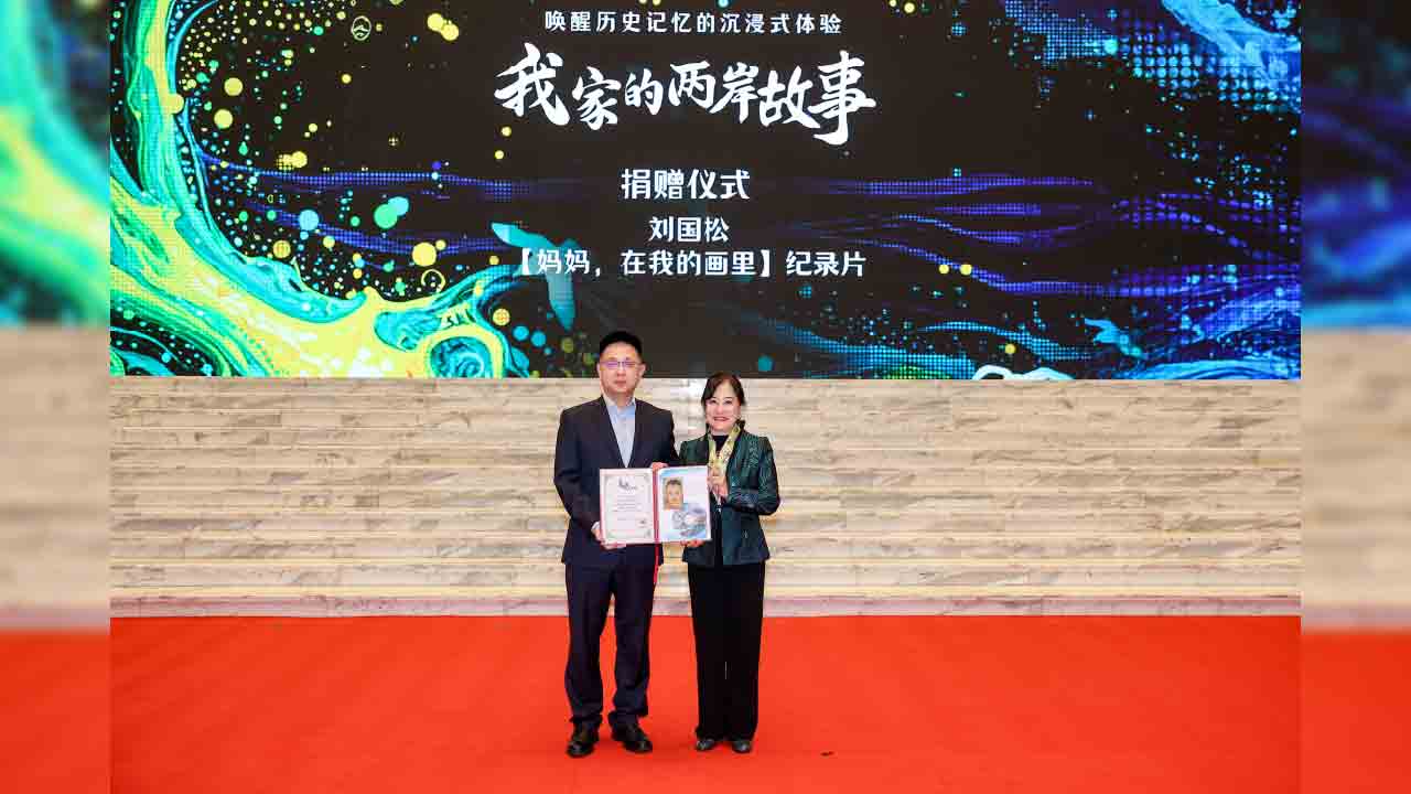 ↑圖說:沈春池文教基金會秘書長石靜文(右)將劉國松的人物紀錄片播映權捐贈給山東博物館。(圖片來源:沈春池文教基金會提供)
