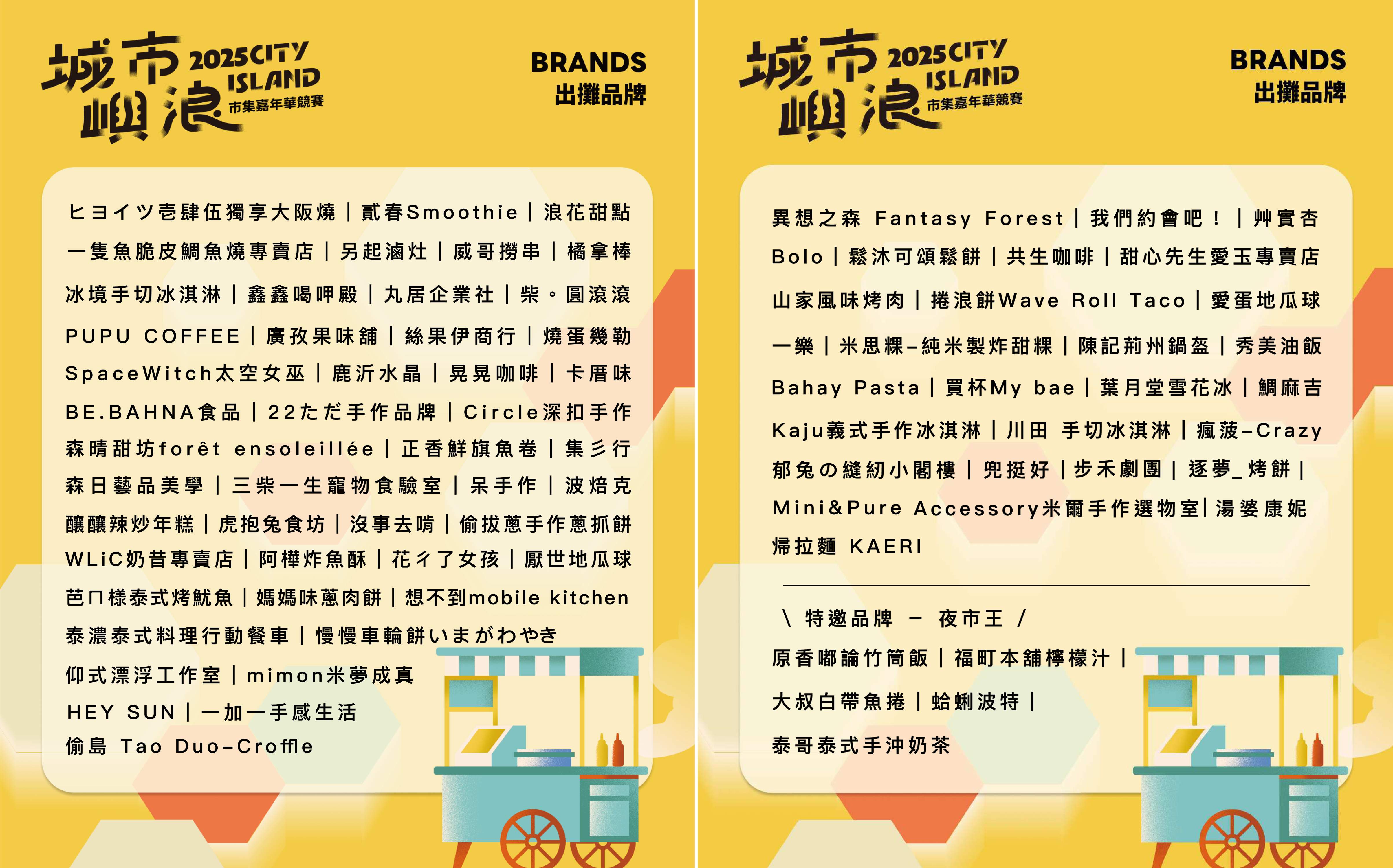 2025「城市嶼浪」市集嘉年華將於11月15、16日兩天下午2點至晚間9點,在高雄流行音樂中心珊瑚礁群熱鬧登場。今年號召全台80組人氣攤車齊聚,從異國料理、本地美食到創意手作、生活選品一應俱全,更有花蓮夜市王等話題品牌參與,打造最Chill的港灣派對,邀市民來吹海風、聽音樂、嚐美食、抽好康。