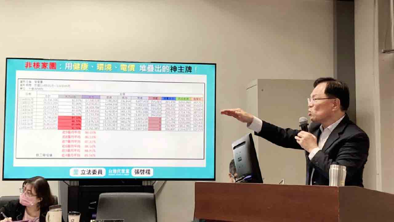 立法委員張啓楷今(5)日在立法院經濟委員會質詢時指出,根據路透社報導,今年前八個月台灣超過87%的電力供應來自化石燃料,創下歷史新高,遠超亞洲平均62%及全球平均57%,使台灣成為全球淨零碳排的「反指標」。