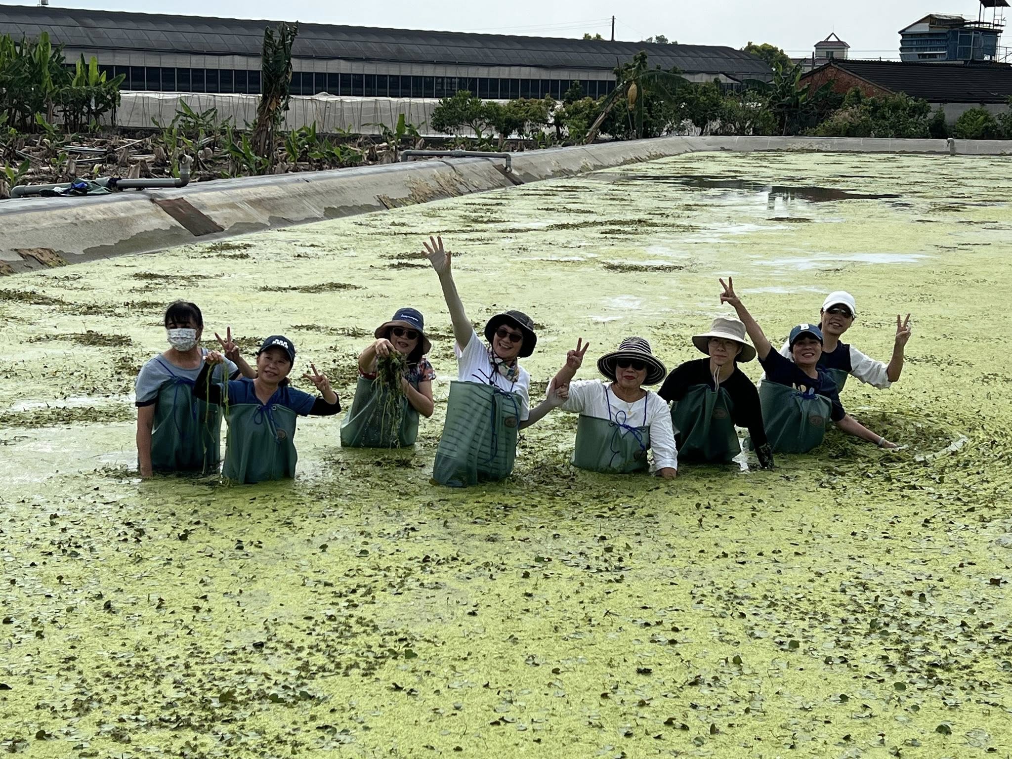 圖說:高雄市農業局邀旅遊業者前往體驗一日農夫,在美濃水蓮田體驗採水蓮行程。(圖片來源:高雄市農業局提供)