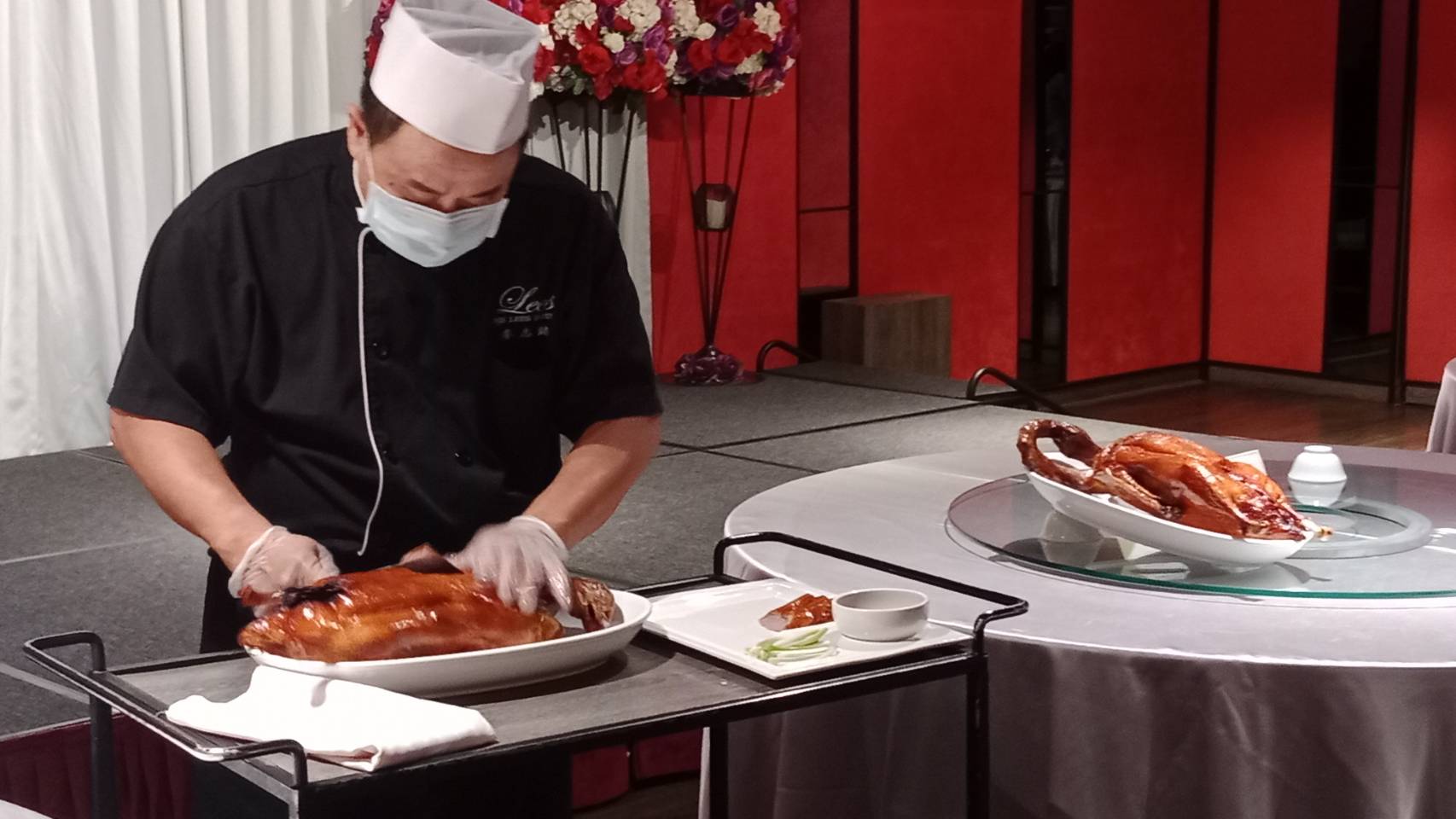 圖說:大廚現場片鵝展現港式切刀功夫。(圖片來源:韓文明拍攝)
