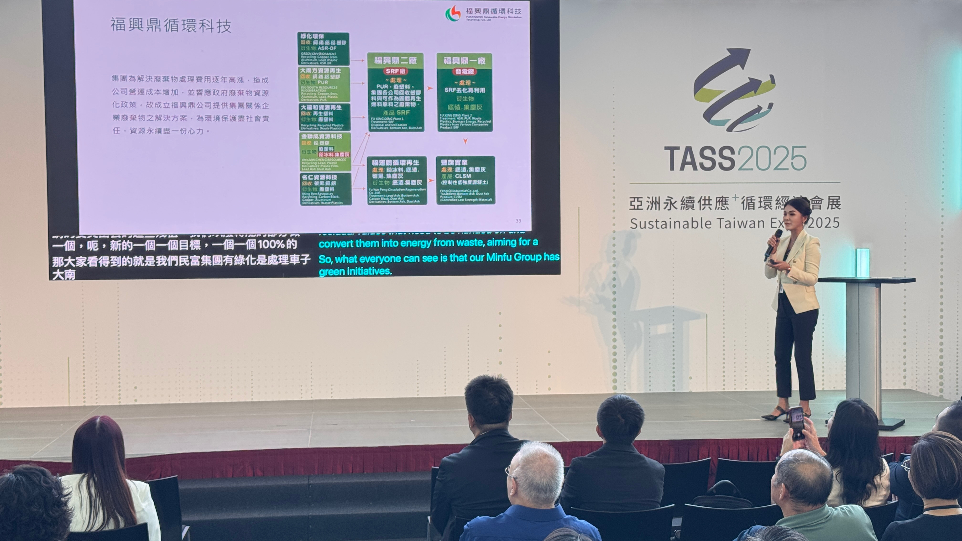 為推動關鍵資源循環再利用、打造綠色永續產業鏈,TASS2025亞洲永續供應+循環經濟會展現於高雄展覽館盛大舉辦,11月7日進行「淨零轉型解決方案-資源循環講座」,邀請「台灣鋰電池資源產業協會」理事長﹑國內環保指標產業-「銘福集團」副董事長陳奕潔進行「改變現有能源格局走向永續」專題演講。