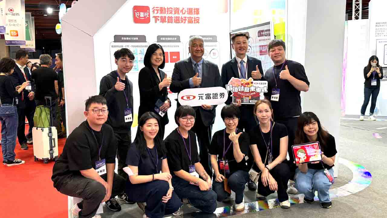 7月正式併入台新新光金控的元富證,也首次加入台新新光金展區,董事長陳俊宏(如下圖後排中,記者李錦奇攝影)也親自前往觀展,展現整併後的向心力。