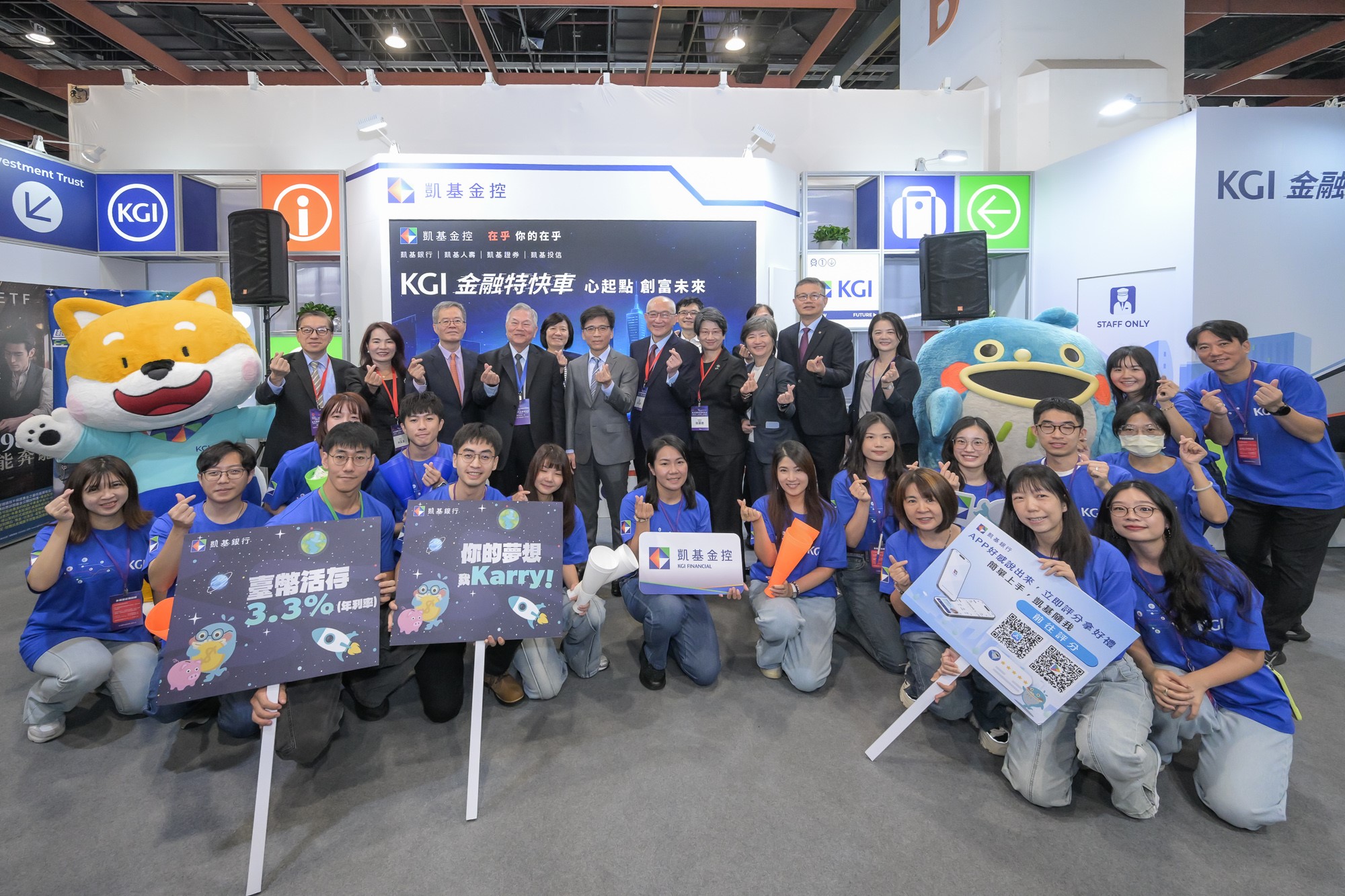 凱基金控結合證券、銀行、人壽、投信等四大子公司,以「KGI金融特快車」為主題,現場設有互動科技與遊戲體驗,邀請民眾搭車啟程,體驗從資產累積、風險轉嫁到財富傳承的一站式金融旅程,經營團隊高層也出席力挺(如下圖,凱基金提供)。