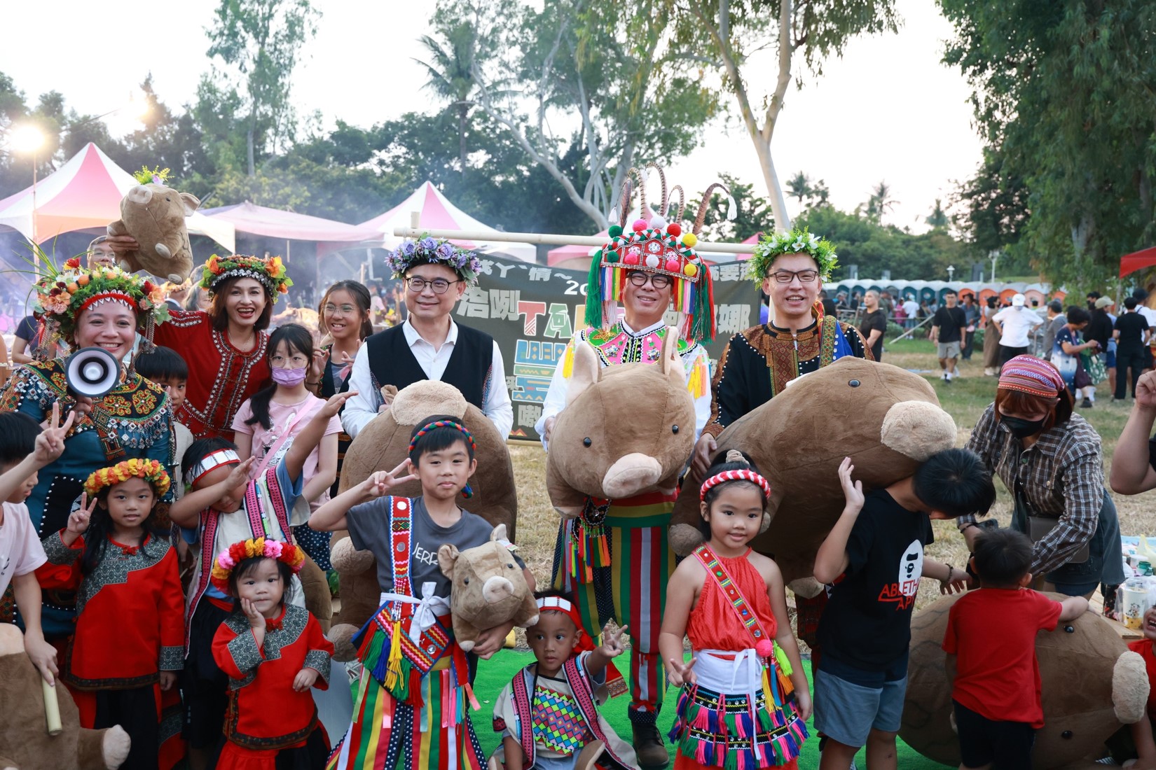 圖說:「2025 TAKAO豐潮」陳其邁身著傳統服飾參與活動,向族人表達敬意。(圖片來源:高雄市原民會提供)