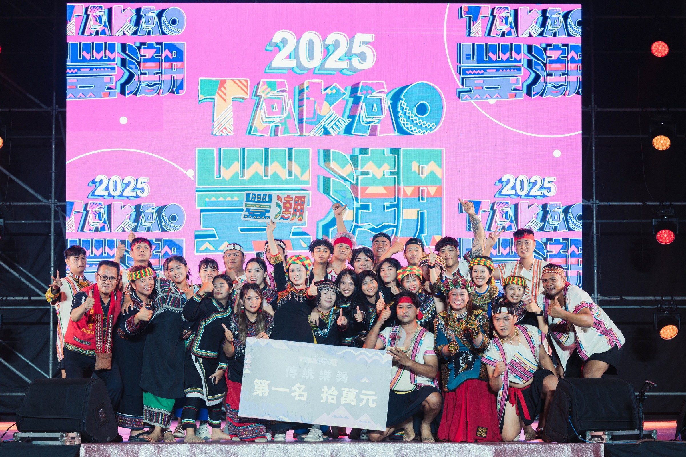 除了音樂盛會,「舞都力樂舞競賽」同樣成為焦點。比賽分為傳統樂舞與原創熱舞兩大項目,族人無論老少皆上場展現舞技與創意,從傳統歌謠、服飾道具到全族語演出,展現文化深度與生命力。傳統樂舞組今年共有八隊參賽,其中首次參與的西拉雅族以木柵國小學生純淨嗓音奪下第二名,而桃源區建山里青年會則以布農族傳統歌謠報戰功的震撼演出勇奪冠軍,抱回十萬元獎金。