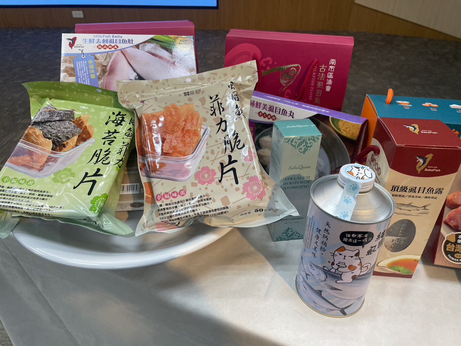 圖說:虱目魚加工品亮相,包括魚肚、魚鬆、魚露、脆片及保健產品等,展現台南虱目魚產業鏈的多樣應用與創新能量。(圖片來源/記者林薇安攝)