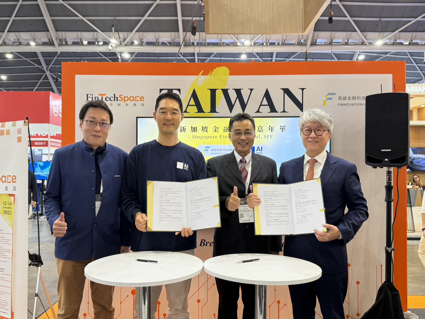 此次展會期間,高雄金融科技創新園區與韓國Aizen Global正式簽署合作備忘錄,雙方將攜手推動金融科技創新應用與國際合作。Aizen Global為國際知名的人工智慧與金融科技公司,曾榮獲韓國人工智慧產業大獎及科學技術資訊通信部長官獎,並於韓國、新加坡、印尼及越南等市場具備成熟商業化經驗。未來雙方將共同舉辦金融科技活動、新創展示日及培訓工作坊,推動人才發展與媒合,並在人工智慧與金融監理科技等領域展開研究與技術交流。