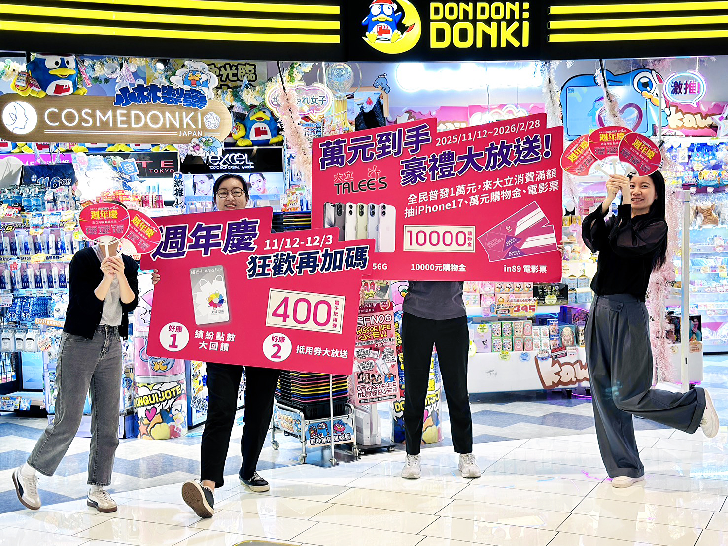高雄大立年度盛事週年慶正式熱鬧登場,以滿滿誠意自11月13日至12月3日推出多重回饋,全館滿額送好禮、指定櫃位再加碼,讓消費者在年末採購季盡情享受購物樂趣。另響應政府全民普發一萬元政策,大立同步推出「萬元到手・好禮大放送」活動,即日起至明年2月底,在大立當日消費滿1萬元以上即可參加抽獎,有機會將iPhone 17、萬元購物金及電影票等多項好禮帶回家。