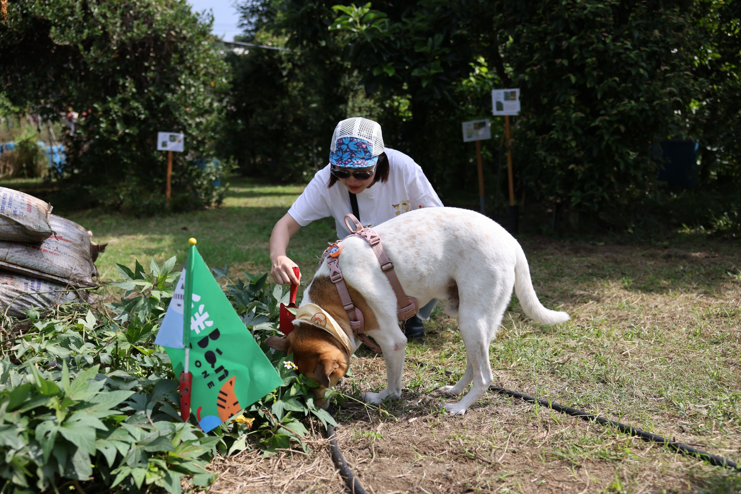 ↑圖說:毛孩們在自然環境中奔跑、挖土、曬太陽,不但紓壓,也增進了與主人的互動與默契。(圖片來源:高雄市農業局提供)