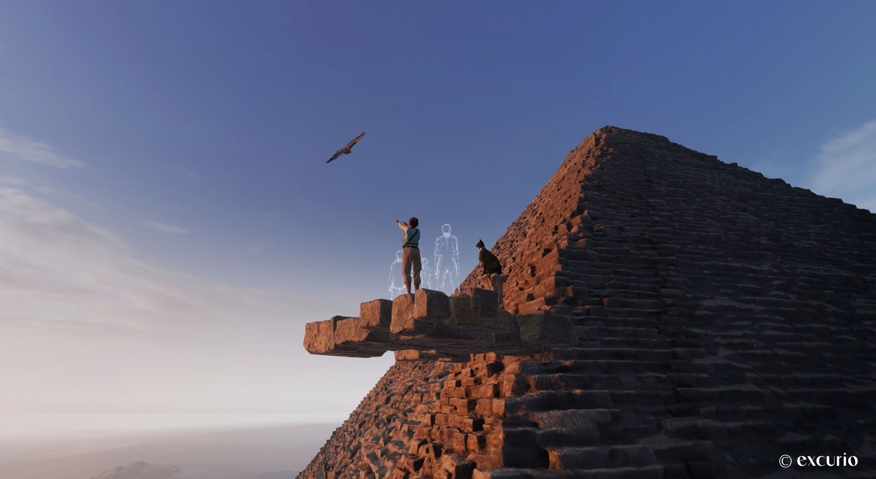 觀眾戴上VR裝置後,可依引導行走於場域內,並透過空間定位技術看見其他參與者的虛擬身影;在劇情段落中,還能登上金字塔頂端、以360度視角俯瞰吉薩高原,也能乘太陽船穿越尼羅河、走入古夫王葬禮現場,理解古埃及文明的禮儀與信仰。