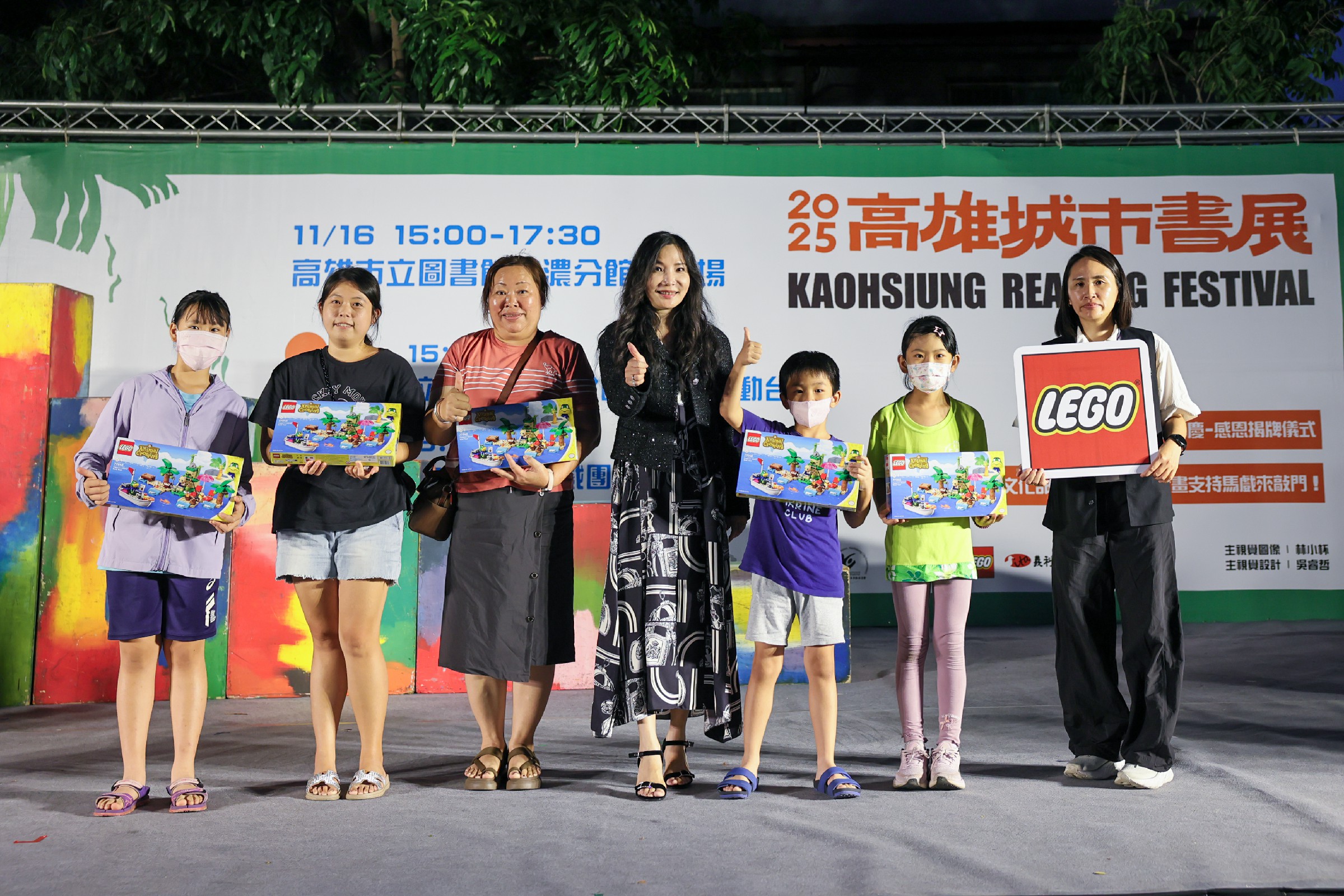今年的高雄城市書展更展現公私協力的文化成果。義利捷董事長鍾景雲與李美青伉儷承續父親鍾兆銘校長的教育理念,長期支持美濃分館營運與公益計畫。今年適逢分館十週年,更特別舉行「感恩揭牌儀式」,讓跨世代善行持續在地方發光。樂高台灣則捐贈超過30組積木盒組,增添孩子參與書展與館慶的動力;FOCASA馬戲團與拉縴人文化藝術基金會亦以專業演出跨界響應,將藝術與音樂帶進閱讀場域,以視覺與聲音共同慶祝美濃分館的十歲生日。