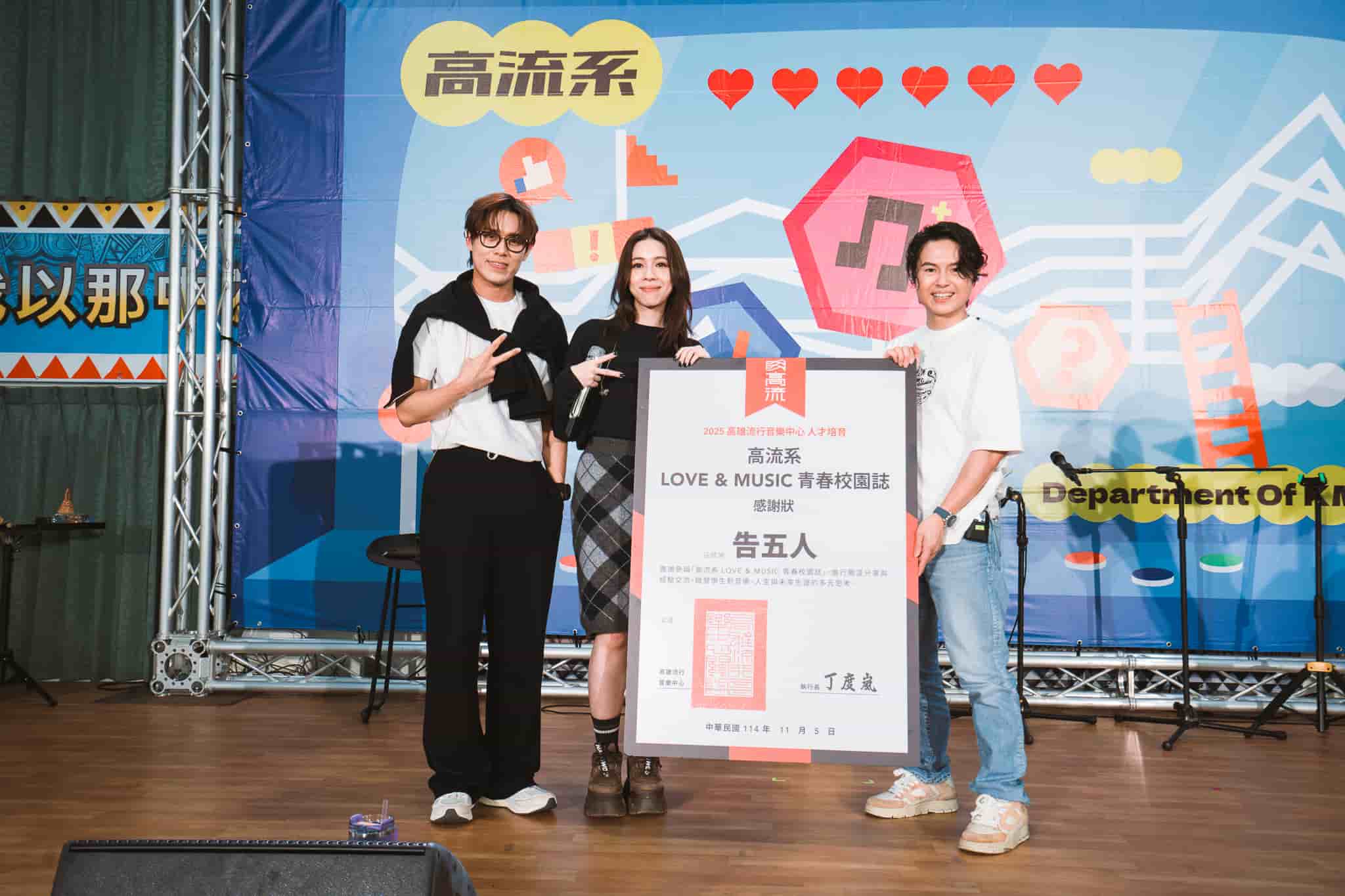丁度嵐表示,感謝告五人與麋先生從首屆起就支持「高流系」課程,高流不只是舞台,更希望成為年輕人追夢的夥伴。未來將持續深化校園計畫,以音樂陪伴更多學生,看見自身可能,開創走向流行音樂產業的道路。
