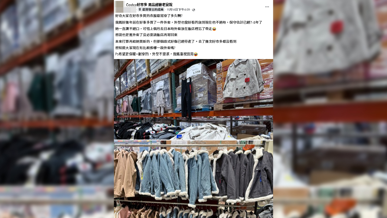 好市多外套耐穿成話題 網友實測:穿7-8年不過時