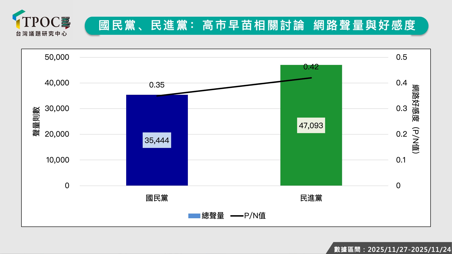 數據分析顯示,儘管高市早苗「台灣有事」言論引發北京強烈反彈,卻在台灣內部催化「挺日」情緒與正面回應,民進黨與其支持者迅速接招,主動擴大議題聲量,透過旅遊、美食等軟性話題拉抬好感度,反觀藍營部分政治人物急於批評高市早苗言論或做切割,卻不被主流網路輿論埋單,倘若後續無法提出更具說服力的區域戰略及外交論述,恐怕難以說服多數民意。