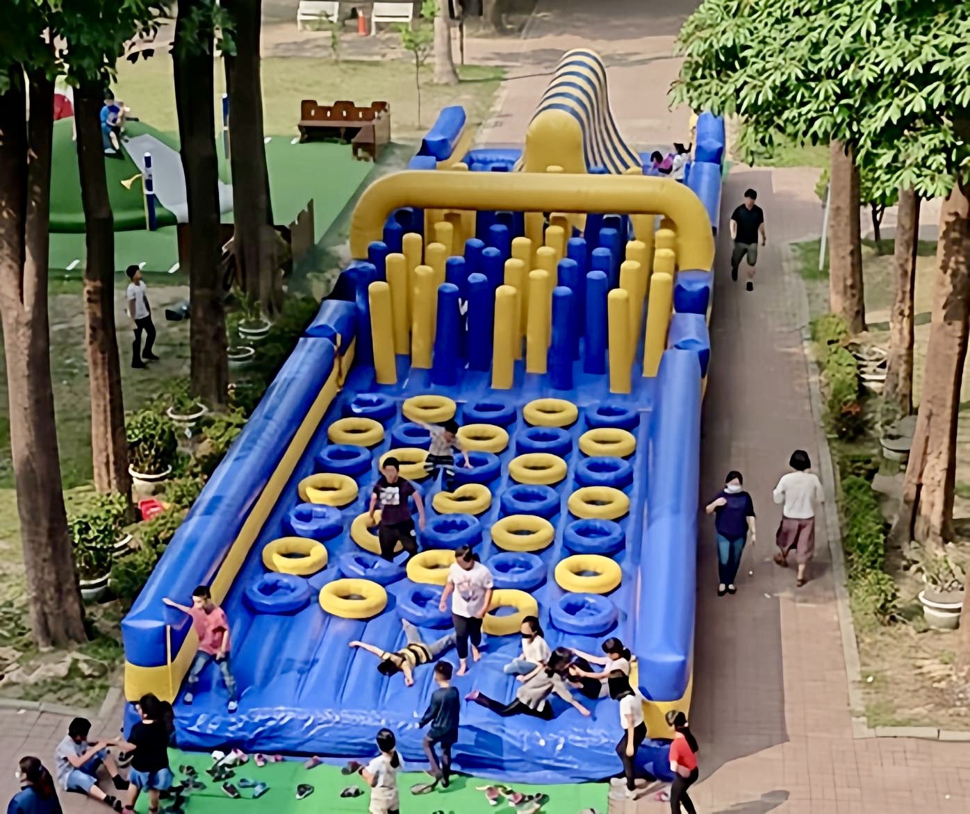 活動內容多元,趣味闖關賽設計 6 大關卡,結合籃球、棒球、保齡球、乒乓等球類與童玩元素,適合親子共同挑戰,前 500 組完成闖關的家庭可獲紀念毛巾;另有專為 5 至 12 歲兒童打造的氣墊障礙挑戰賽,前 300 名挑戰成功者可獲高雄熊杯墊,兩項活動皆採現場報名,名額有限。