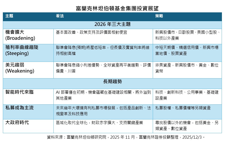 富蘭克林坦伯頓基金集團發表2026年全球投資展望,看好3大主題,以及3大長期趨勢。