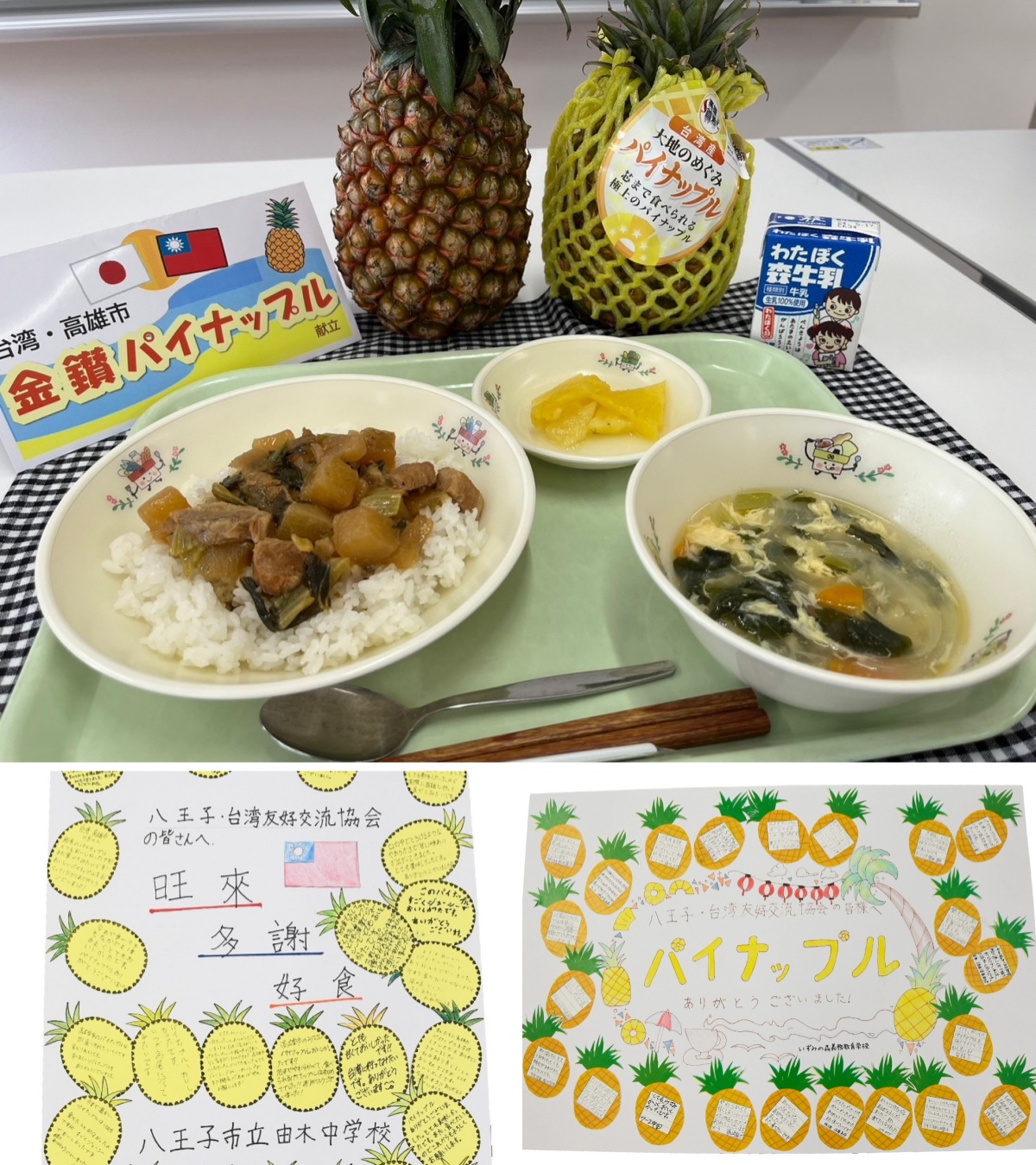 ↑圖說:高雄食農在國際合作上,今年媒合高雄金鑽鳳梨供應八王子市38所國中、約1萬5千名學生午餐,並由對方製作教材介紹高雄產地特色。(圖片來源:高雄市農業局提供)