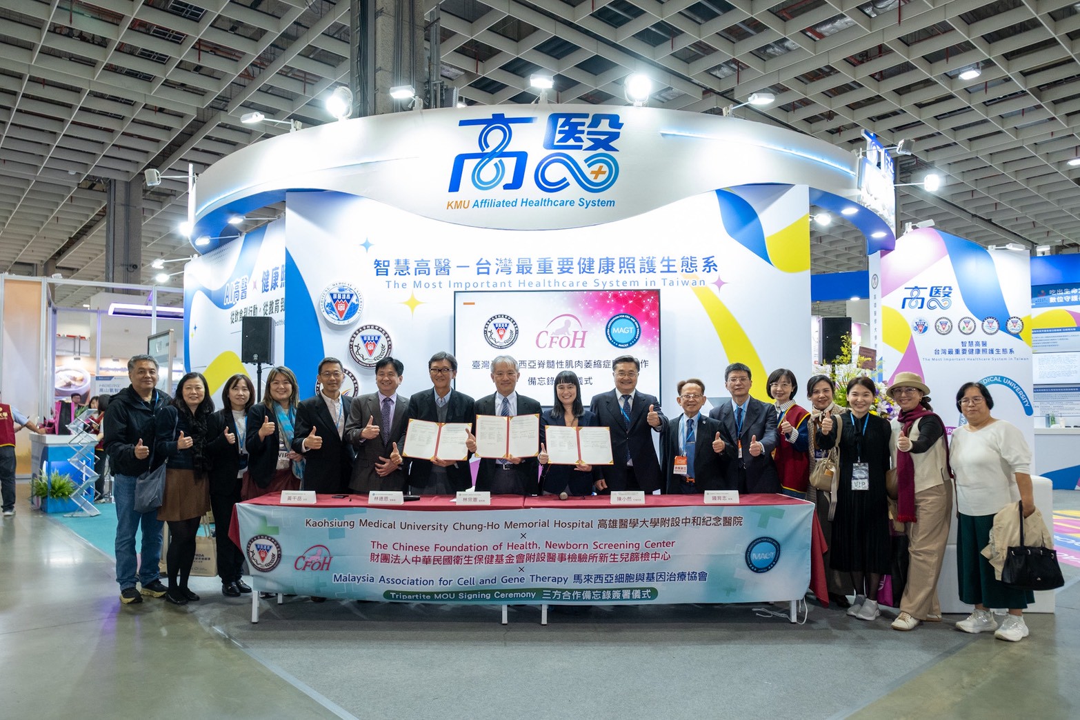 高雄醫學大學附設中和紀念醫院日前在台灣醫療科技展中,由副院長林宗憲率領鐘育志教授脊髓性肌肉萎縮症(SMA)團隊,與財團法人中華民國衛生保健基金會附設醫事檢驗所新生兒篩檢中心,以及馬來西亞細胞與基因治療協會(MACGT)共同簽署合作備忘錄(MOU),宣示三方將攜手推動SMA臨床與新生兒篩檢合作,展現「臺灣隊」醫療軟實力。