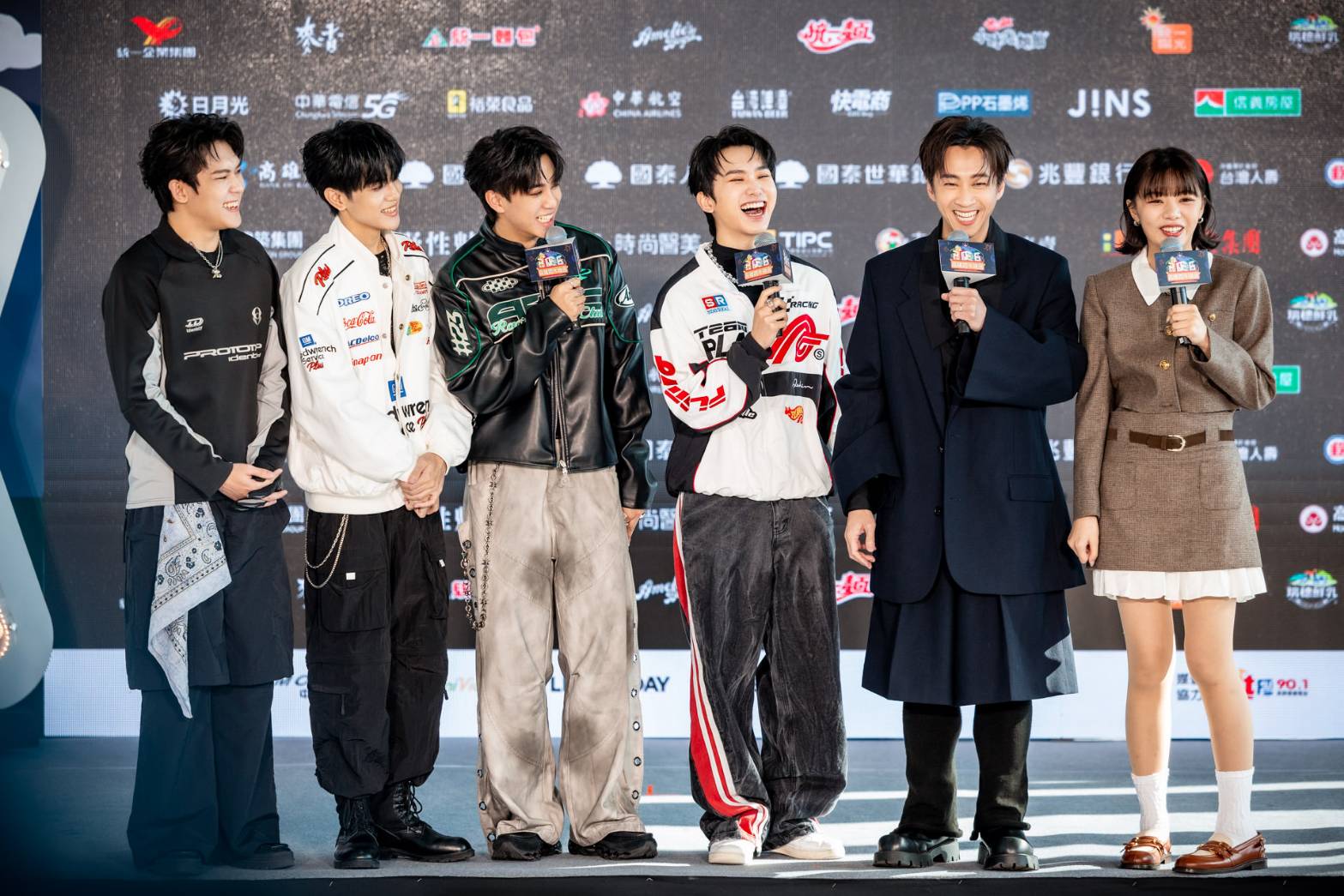 圖說:高雄跨年晚會主持人陳漢典搭檔木木 林葦妮,以及晚會卡司之一的AcQUA源少年11日在記者會亮相。(圖片來源:高雄市政府提供)