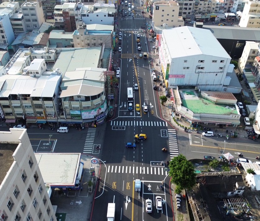 ↑圖說:高雄市政府交通局與工務局合作,不只是把市區主要幹道重新鋪上柏油,更把握機會「重整道路邏輯」。(圖片來源:高雄市交通局提供)