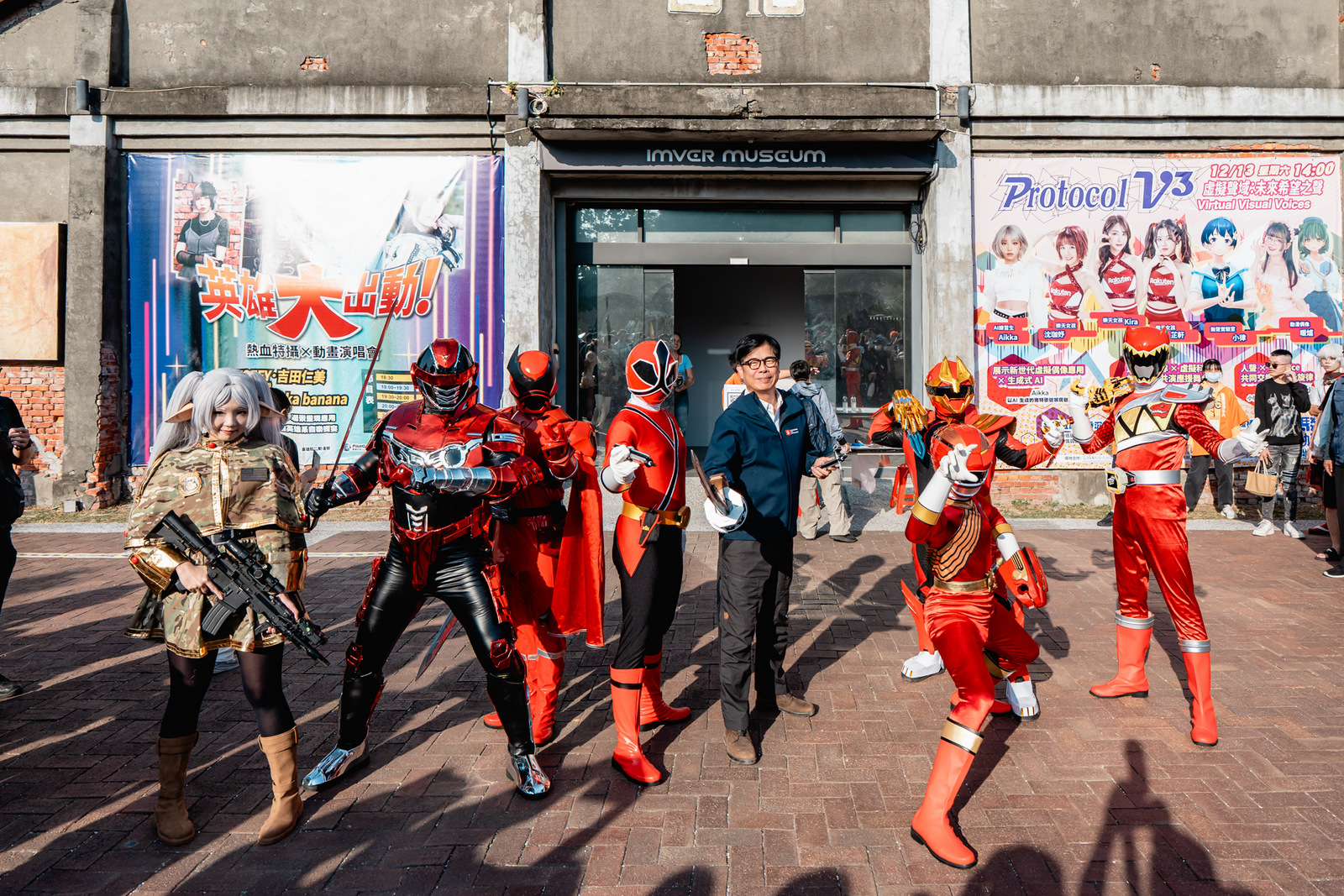 ↑圖說:高雄隊長陳其邁現身駁二動漫祭,與各戰隊隊長帥氣合影(圖片來源:高雄市文化局提供)