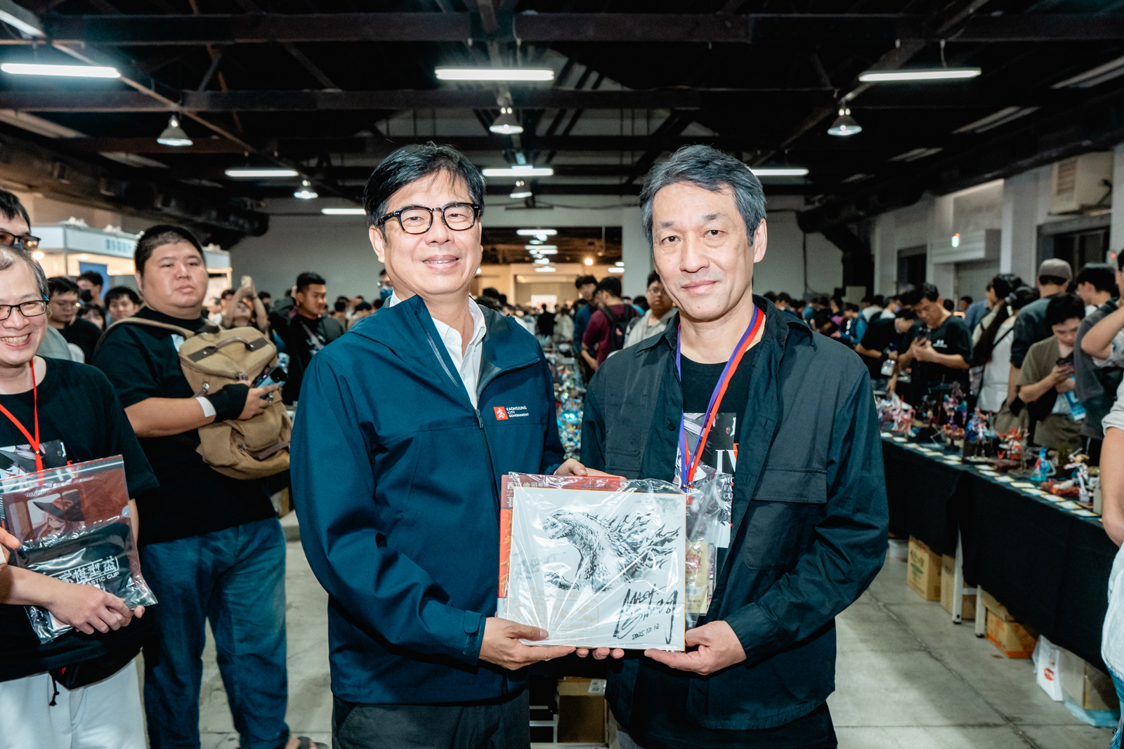 日本怪獸插畫大師西川伸司亦到場參與,並致贈今年出版、親筆簽名的怪獸圖鑑給陳其邁,市長則回贈高雄代表IP「高雄熊」周邊商品,象徵台日動漫創作的相互應援。陳其邁表示,駁二動漫祭已成為高雄具代表性的年度大型活動,結合港區獨特場景,讓Cosplayer盡情發揮創意,也期待透過高雄的熱情與便捷,讓動漫迷享受一趟完整又難忘的奇幻旅程。