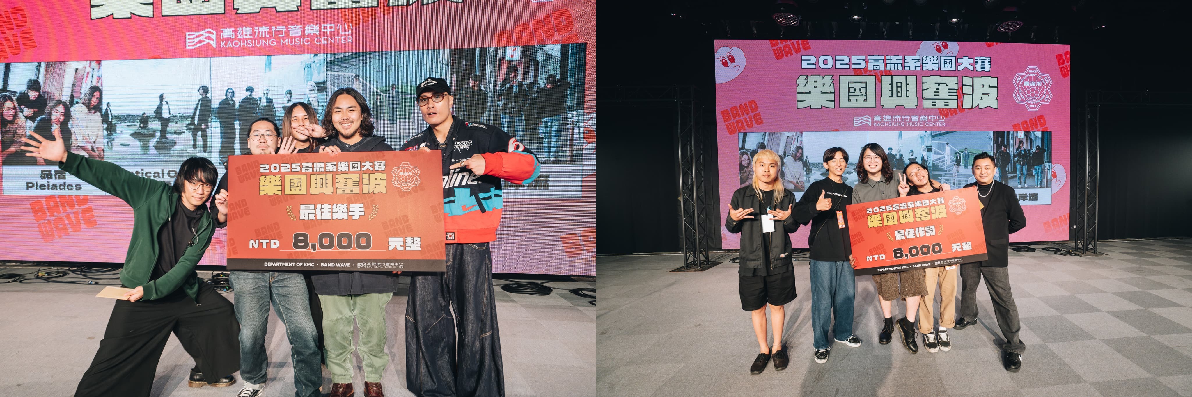 為鼓勵創作能量,今年賽事同樣設置個人獎項,且全數由高雄在地樂團抱回。「離岸流」鄭凱鴻以〈台北橋〉獲得最佳作詞獎;「昴宿 Pleiades」林士恆以〈反烏托邦〉拿下最佳作曲獎,其鼓手陳冠橋則奪得最佳樂手獎,精湛技巧與音場掌控力獲評審高度肯定。