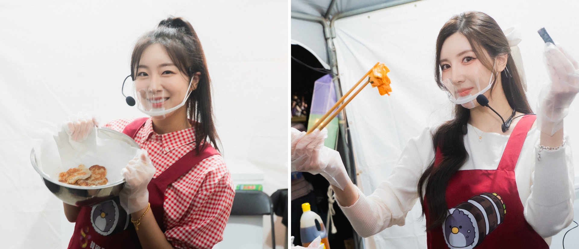 活動現場重現韓劇經典布帳馬車風情,韓國啦啦隊女神安芝儇、南珉貞更親自下廚示範家鄉料理,吸引上百名粉絲排隊朝聖。安芝儇以流利中文與粉絲互動,直呼高雄就像第二個家,並現場製作外酥內軟的馬鈴薯煎餅,俐落甩鍋掀起全場掌聲;南珉貞則端出忠武海苔飯捲,分享最道地的韓式吃法,展現滿滿親和力,成為活動最吸睛焦點之一。