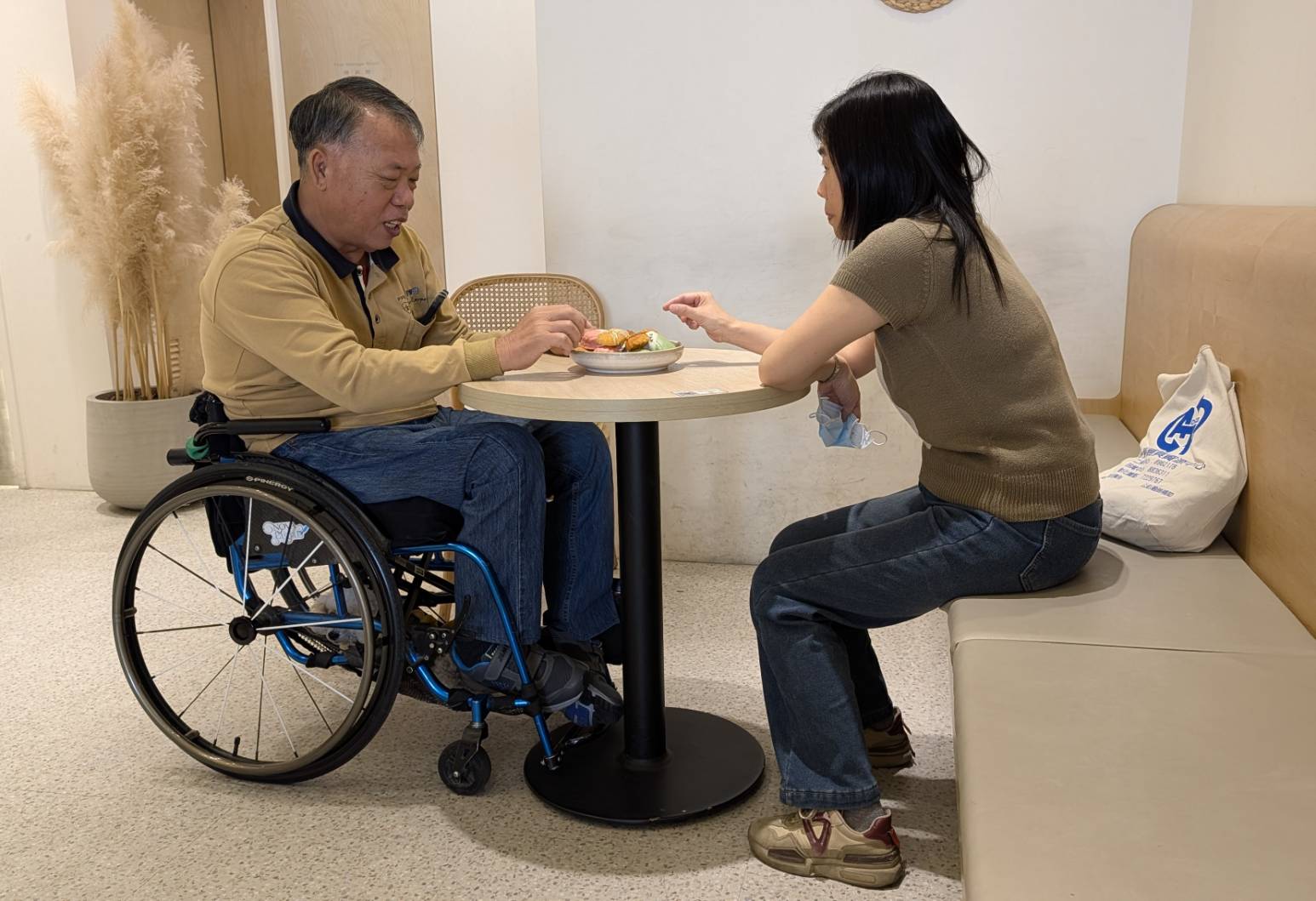 ↑圖說:具有可移動桌椅及容膝桌子對身障朋友聚會是重要的(圖片來源:高雄市社會局提供)