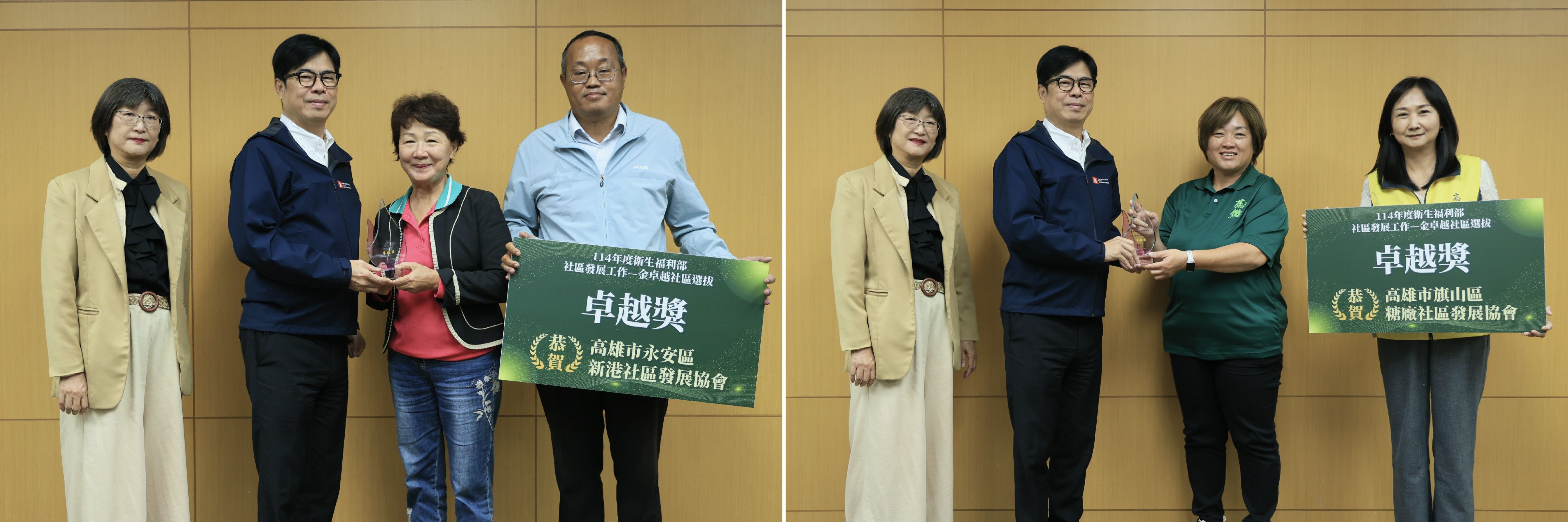 在衛生福利部「114年度全國社區發展金卓越社區選拔」中,高雄市參選的7個社區全數獲獎,寫下亮眼成績,展現高雄社區深厚的組織動能與多元發展實力。高雄市政府16日於市政會議中公開表揚,由市長陳其邁親自頒發獎座,肯定各得獎社區以卓越成果為城市爭光。