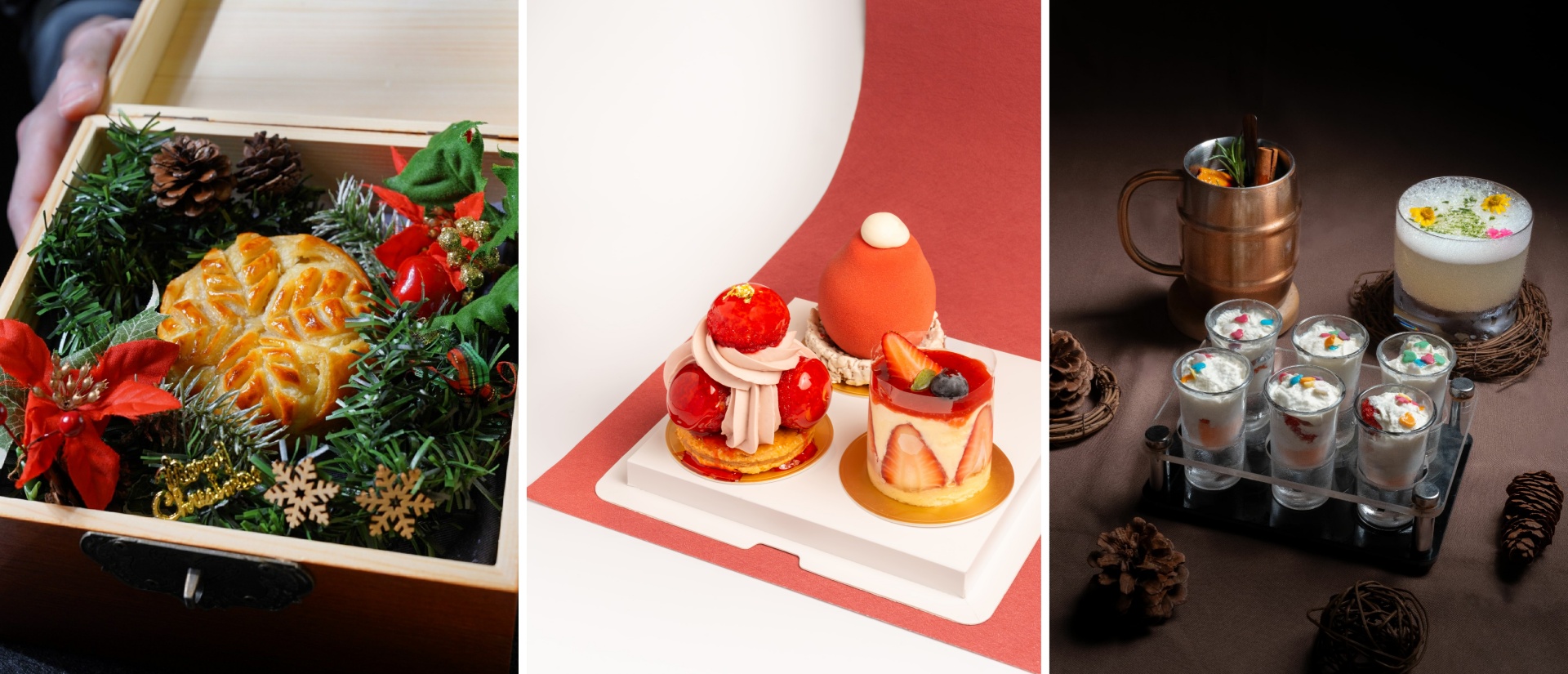 甜點與微醺時光同樣不缺席。二十五樓「飛裊茶軒」推出多款聖誕主題甜點與限定下午茶組合,「五十座懷石日本料理」則準備聖誕限定雙人套餐,提供節慶聚餐新選擇。夜晚時分,「雪茄酒藏館」與「POOL BAR 池畔酒吧」推出多款聖誕主題調酒,搭配社群互動優惠,增添過節樂趣;地下樓層烘焙坊則推出義大利傳統聖誕麵包潘娜朵妮,讓民眾將節慶甜蜜帶回家。